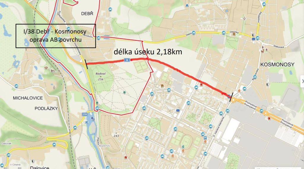 Vybrali jsme zhotovitele opravy 2,2 km dlouhého úseku silnice I/38 mezi Debří a Kosmonosy. Z 6 uchazečů o zakázku veřejné výběrové řízení vyhrála společnost COLAS CZ, která opravu provede za 33,8 mil. Kč bez DPH s uvedením opravovaného úseku jako celku do provozu za 90 pracovních dnů. Celá stavby by měla být podle smlouvy dokončena celkem za 150 dnů. Předpokládaná hodnota veřejné zakázky podle zadávací dokumentace původně činila 55,59, mil. Kč bez DPH. Vybraný zhotovitel tak proti předpokladu práce při opravě komunikace provede o 21,79 mil. Kč bez DPH levněji, tedy bez mála za 60% předpokládané hodnoty této zakázky.