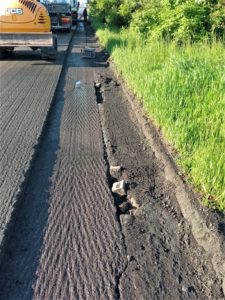 V průběhu prací v úseku č. 3, který začíná cca 300 metrů za mostem přes železniční trať směrem na Pňov, byly po odfrézování obrusné vrstvy zjištěny široké trhliny ve zbývajících asfaltových vrstvách při kraji pravé části komunikace. Provedená sonda potvrdila předpokládaný havarijní stav krajnice způsobený nevyhovujícím podložím, které nemá potřebnou únosnost. Z tohoto důvodu se zahájila sanace celé takto poškozené části vozovky, kde je třeba odstranit neúnosné zeminy v aktivní zóně v tloušťce 600mm do úrovně parapláně.