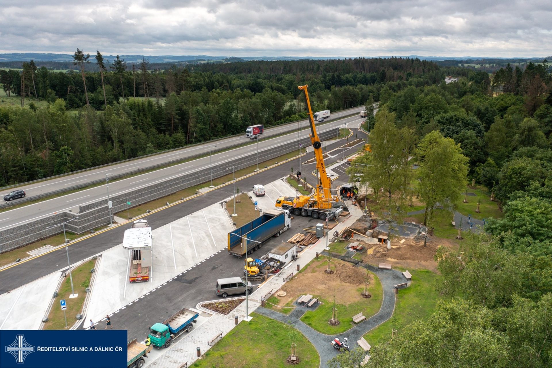 Její plocha nabízí nová parkovací místa pro 12 nákladních a 26 osobních vozidel, 2 autobusy a 3 pro vozidla s přívěsem, karavany či obytné vozy. Nechybí ani kontrolní stanoviště Policie ČR. Mimo parkovací část je relaxační zóna se 44 lavičkami, 7 lavičkami se stolem, 24 odpadkovými koši v kompletní parkové úpravě. Součástí je rovněž fitness koutek se 4 posilovacími stroji. V centru stoji automatické korporátní toalety se 3 kabinkami, pisoáry, sprchou a s klopným přebalovacím pultem. Zařízení je orientováno tak, aby v části čelem k dálnici mohly být umístěny nápojové a občerstvovací automaty. Dodavatel toalet bude současně po dobu dalších 5 let zajišťovat jejich provoz, údržbu a starat se o jejich čistotu.