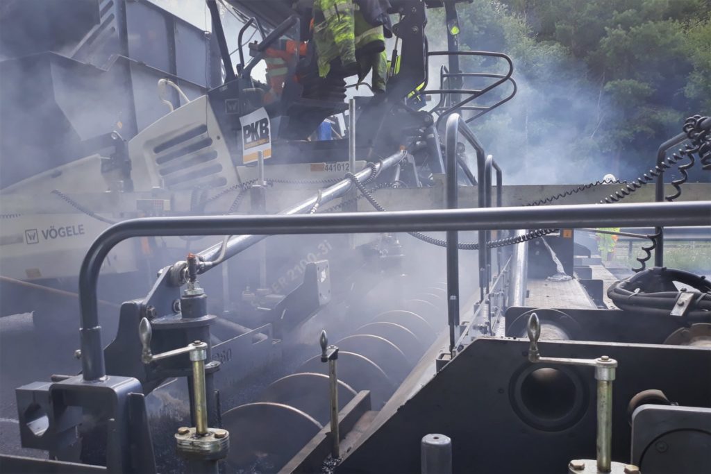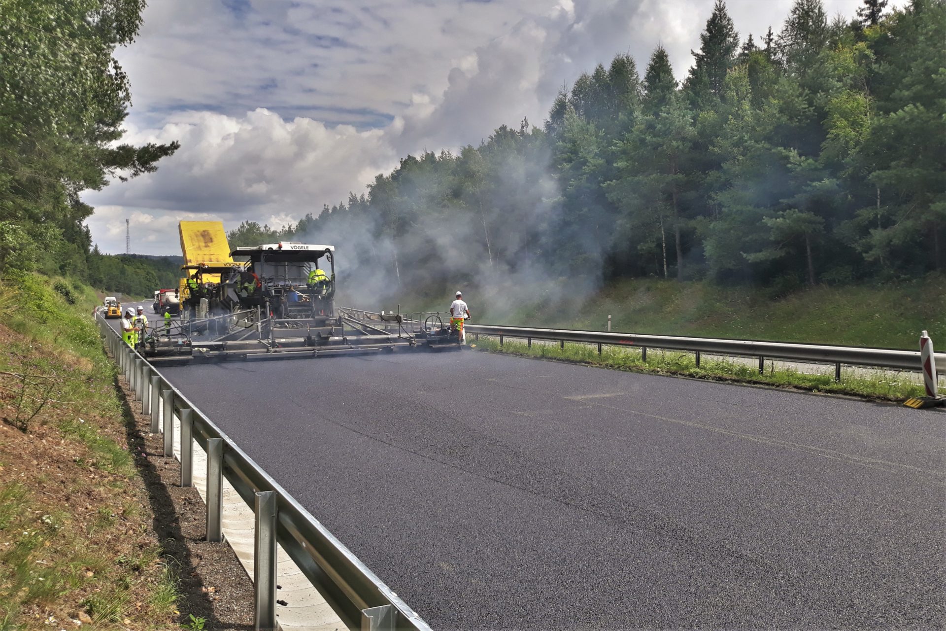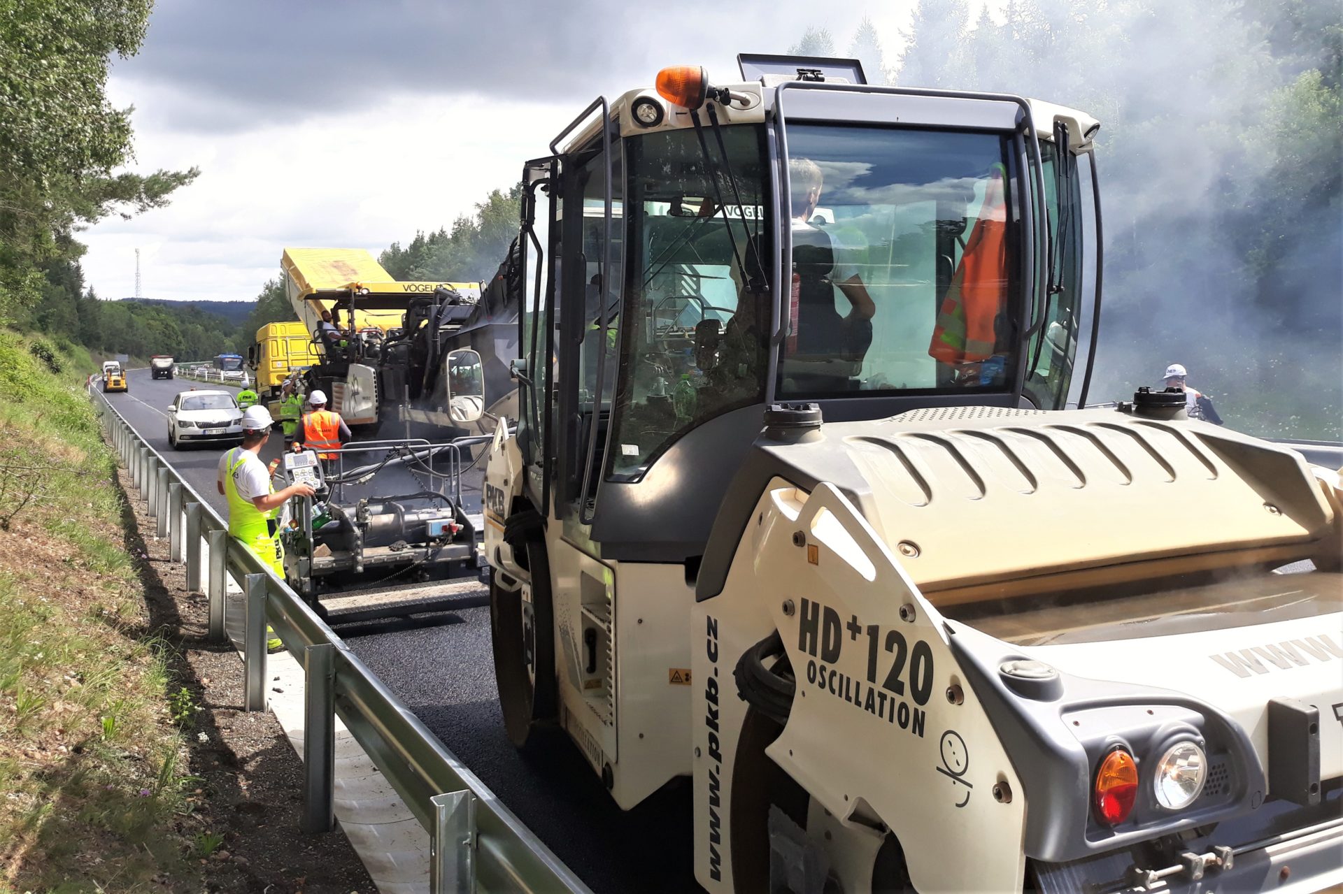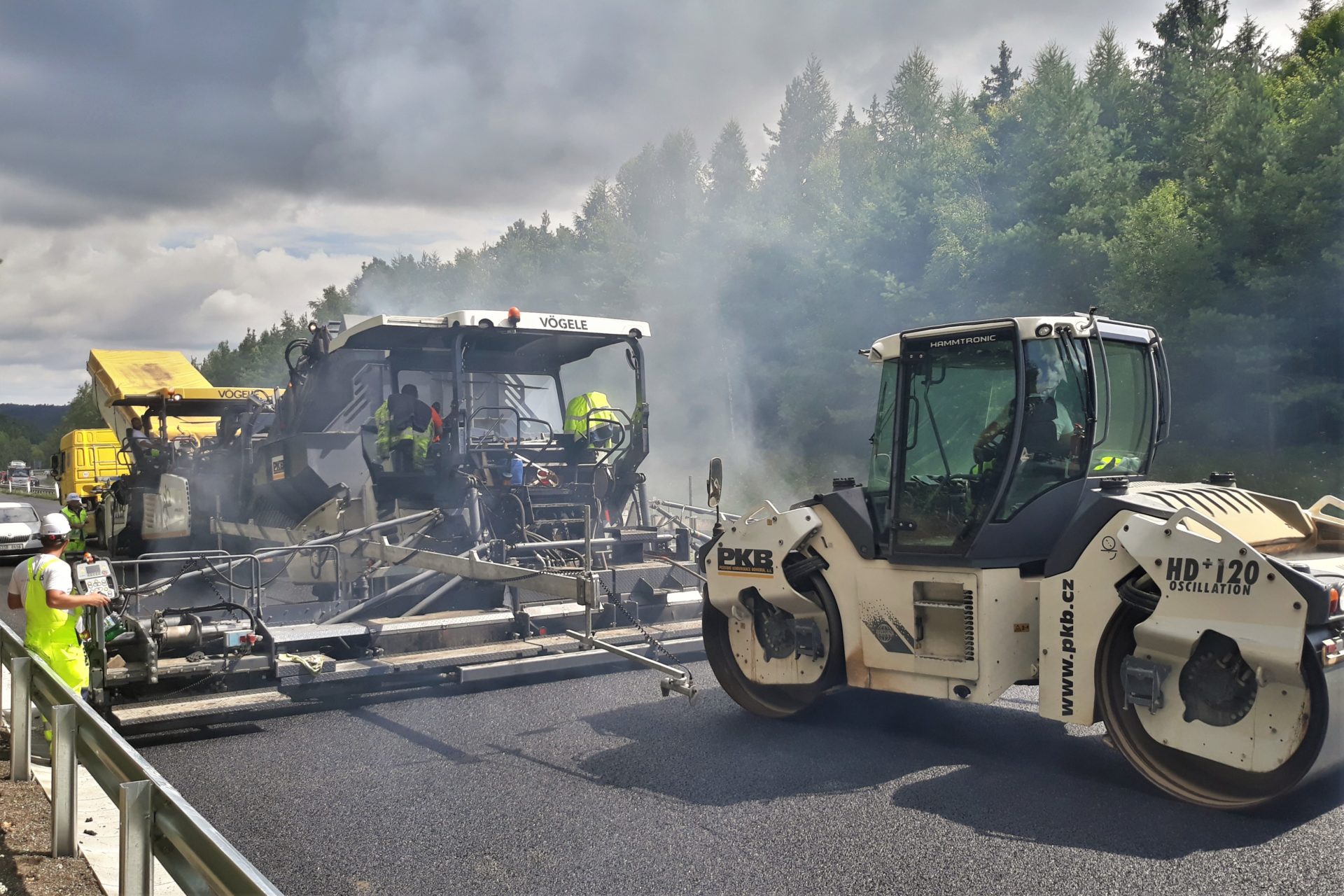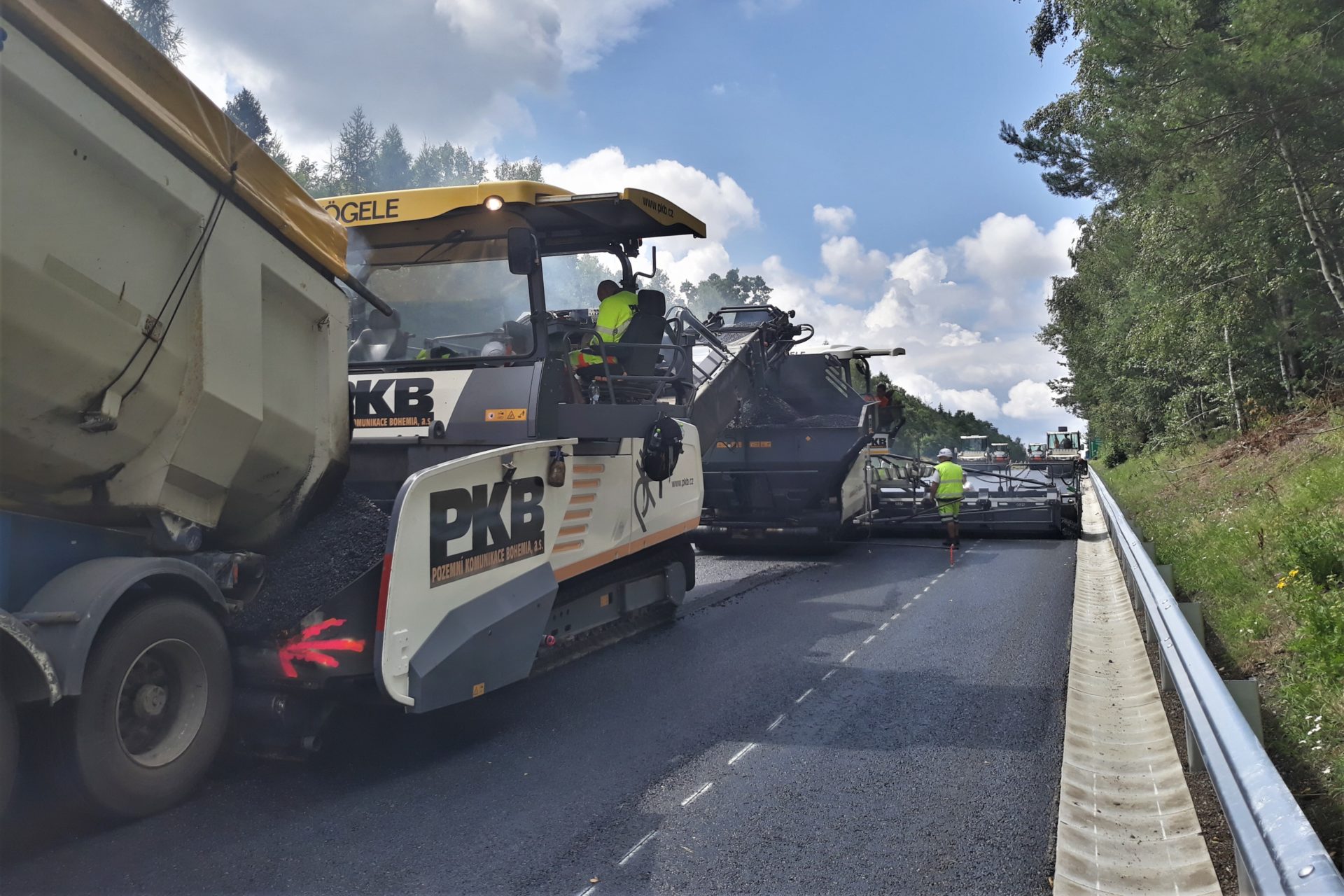 Do finále vstupuje oprava pravého jízdního pásu v délce 5,5 kilometru dálnice D4 mezi Kytínem a Dobříší. V tomto týdnu probíhá v celé délce i šířce jízdního pásu pokládka obrusné konstrukční vrstvy z mastixu (viz. foto). Ta v navazujících úsecích proběhne také na větvích mimoúrovňových křižovatek EXIT Kytín a Voznice, které obsluhují jízdní pás ve směru na Příbram. Aktuálně je tak tento jízdní pás zcela uzavřen a doprava je kompletně převedena do protilehlého jízdního pásu, kde se jezdí v režimu 2+1(1 jízdní pruh směr Příbram). Nicméně na víkend dojde k přechodnému převedení na režim 1/1+2, aby se předešlo případným komplikacím v dopravě v souvislosti s víkendovými špičkami.