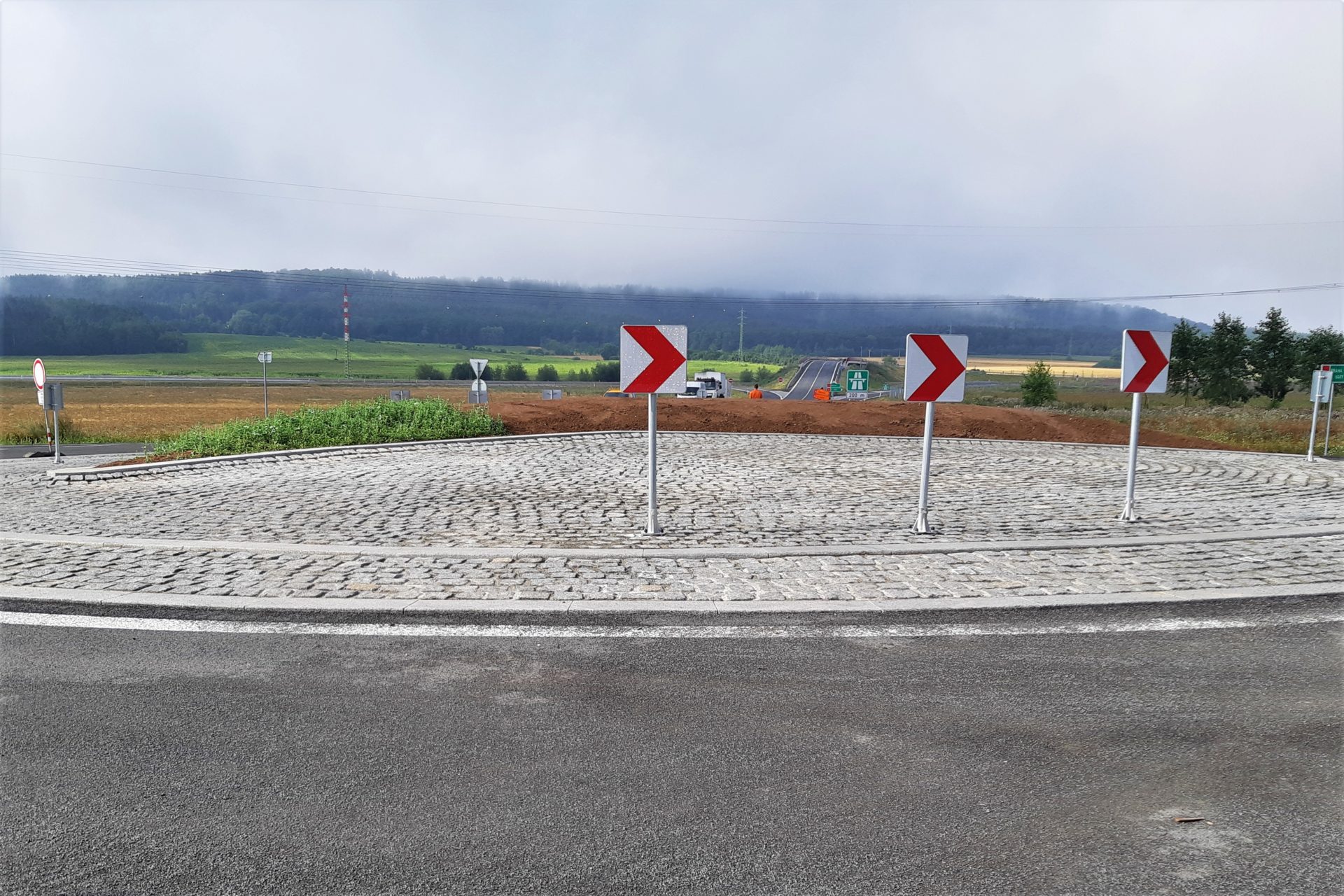 Koncem minulého týdne jsme dokončili vodorovné dopravní značení a v úterý 10.8.2021 uvedeme do provozu novou okružní křižovatku u Řevničova, která nahradí křížení silnice I/16 a silnice I/6 (budoucí II/606) nedaleko exitu 38 Řevničov dálnice D6. Dojde tak současně i k plnému zprovoznění silnice I/6, jejíž část se mezi Řevničovem a Novým Strašecím souběžně s výstavbou okružní křižovatky opravovala.