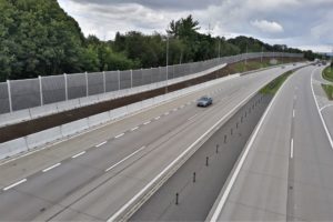 Další 2 protihlukové stěny se dokončují na dálnici D1. Podél nájezdové větve MÚK Chodov směr centrum doplňujeme cca. 100 metrů mezi dvě již vybudované části. Vztyčeny jsou sloupy a připravuje se samotné osazení soklových a absorpčních desek. U Újezdu u Průhonic se dokončuje pilotové založení pro sloupy PHS. V místech kde to nebylo možné z důvodu skalního podloží se přistoupilo k založení plošnému. Z důvodu zahájení zakládání sloupů u mostu přes Botič došlo o tomto víkendu také k omezení na dálnici D1 a provoz je v inkriminovaném úseku veden 3 provizorními jízdními pruhy. V sobotu 21.8. 2021 je pak plánované krátkodobé uzavření dálnice D1 od Exit 6 Průhonice. Po cca. 15-20 minutách bude provoz obnoven ve 2 pruzích směr Praha, což by mělo trvat přibližně celé dopoledne, a poté bude obnoven provoz opět ve 3 pruzích. Důvodem tohoto plánovaného omezení je osazení ocelové mostní konstrukce na již vybudované opěry, která bude sloužit pro uchycení samotná protihlukové stěny.