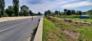 V pondělí 9.8.2021 jsme zahájili opravu mostu ev.č. 12-017 přes Jalový potok u Přistoupimi nedaleko Českého Brodu. Stávající betonový most je hodnocen technickým stavem V- špatný a je v současné době provozovaný podmíněně při zajištění bezpečnosti provozu provizorními betonovými svodidly na obou stranách mostu. Má poruchy takového charakteru ( např. rozsáhlá koroze předpínacího sytému příčného předpětí z důvodu nefunkční izolace), které nedovolují navrhnout jeho ekonomickou opravu. Stávající objekt bude tedy demolován a na jeho místě postavíme most zcela nový.