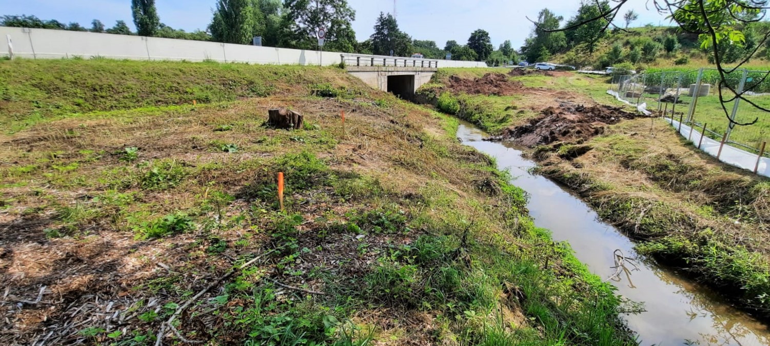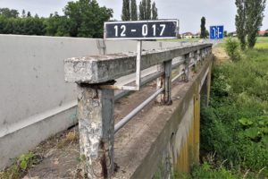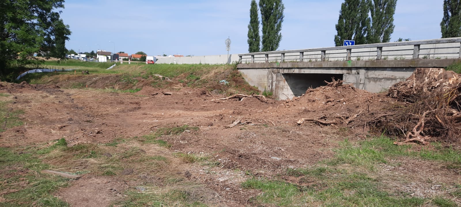 V pondělí 9.8.2021 jsme zahájili opravu mostu ev.č. 12-017 přes Jalový potok u Přistoupimi nedaleko Českého Brodu. Stávající betonový most je hodnocen technickým stavem V- špatný a je v současné době provozovaný podmíněně při zajištění bezpečnosti provozu provizorními betonovými svodidly na obou stranách mostu. Má poruchy takového charakteru ( např. rozsáhlá koroze předpínacího sytému příčného předpětí z důvodu nefunkční izolace), které nedovolují navrhnout jeho ekonomickou opravu. Stávající objekt bude tedy demolován a na jeho místě postavíme most zcela nový.