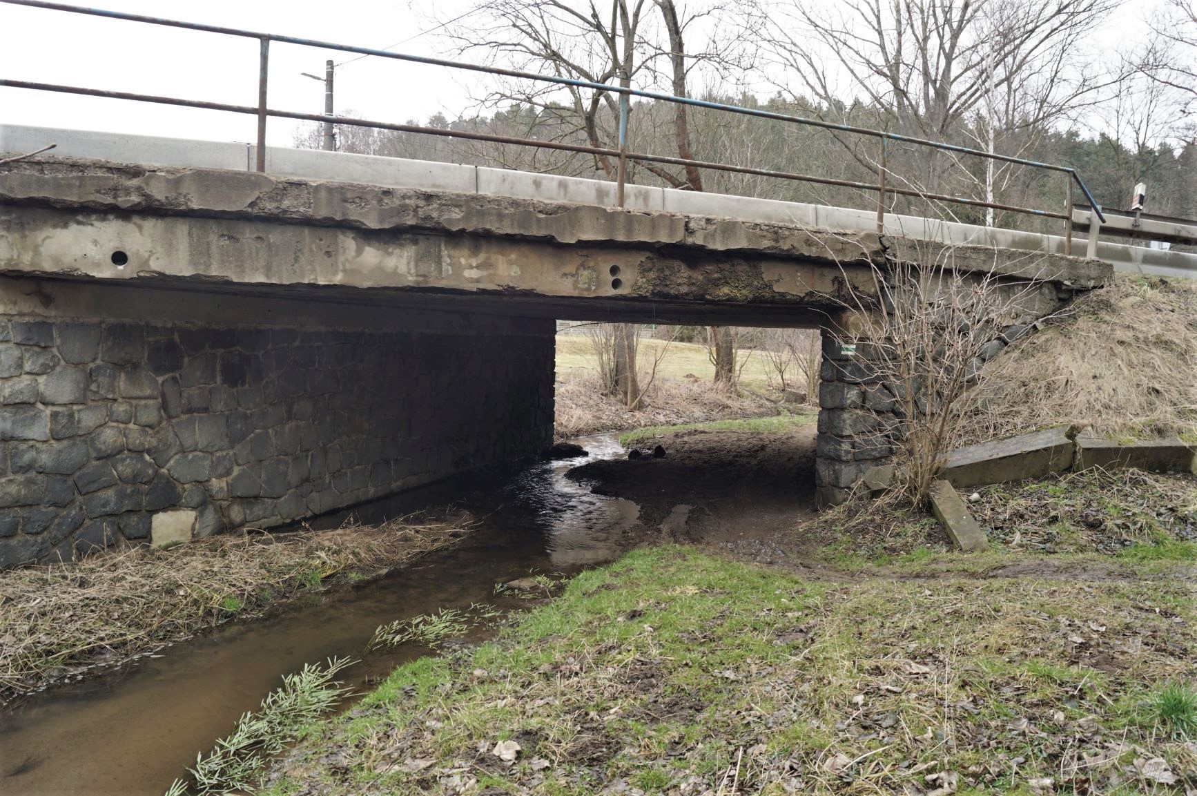 V minulém týdnu jsme zahájili celkovou opravu mostu přes Jindrovský potok v Oborech na Příbramsku. Most ev. č.18-019 je již v nevyhovujícím stavu. Jeho nosná konstrukce tvořená prostě podepřenou železobetonovou deskou je hodnocena z hlediska stavebně technického stavu stupněm VI (velmi špatný stav). O něco lépe je na tom spodní stavba z lomového kamene, která je hodnocena stupněm V- špatný stav. S ohledem na stav konstrukce mostu není ekonomické z hlediska celoživotních nákladů stavby přistupovat k opravě a bylo rozhodnuto o demolic stávajícího mostního objektu a výstavbě nového v identickém místě. Ten je pak navržen jako plošně založený jednopolový, polorámový most z monolitického železobetonu stejně jako jeho křídla a římsy, které budou osazeny ocelovými zábradelními svodidly splňujícími již aktuální normy. Součástí opravy je také nové vozovkové souvrství, oprava obrusné vrstvy navazující komunikace a dopravního značení.