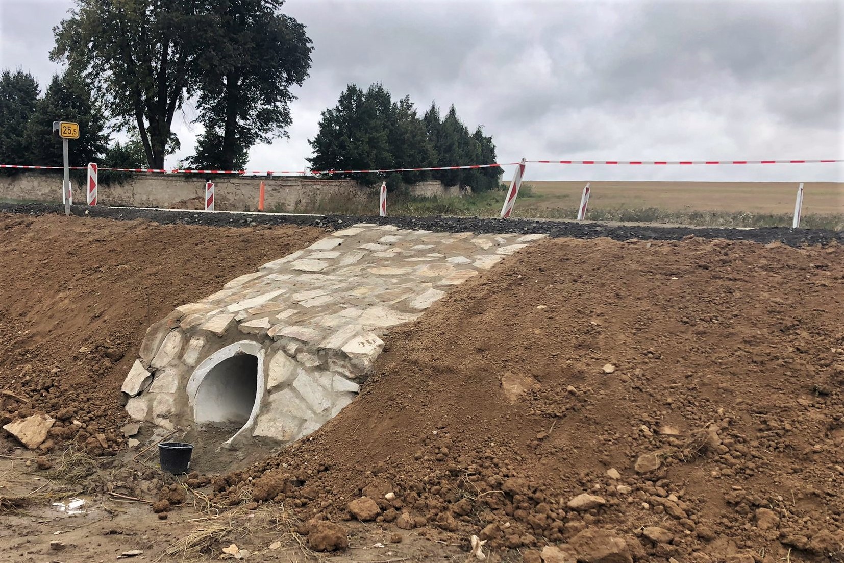 Na silnici I/2 u Malotic pokračujeme v přesunutí a výstavbě silničního propustku v novém místě. Ten je hotový pod ve větší části vozovky, což nám umožnilo převedení provozu z provizorní komunikace zpět na silnici I. třídy. Silniční provizorium je již odfrézované a postupně se ruší. Došlo již také k odtěžení v části, kde provizorium při krajnici navazuje na silnici I/2, a pokračovalo se v zatrubnění zbytku propustku. Stavba probíhá bez problémů a již na 20.9. je plánovaná pokládka živičných vrstev vozovky a koncem září uvedení omezeného úseku do provozu, o měsíc dříve proti předpokladu. Aktuálně místem prací projedete kyvadlově 1 jízdním pruhem.