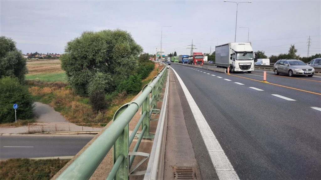 Stavební práce jsou s ohledem na prostorovou náročnost technologických procesů rozděleny do několika etap a mimo dálnice D0, ovlivní i provoz na směrové rozdělené místní komunikaci v ulici Poncarova. Na dálnici D0 ve směru na Brno je provoz z důvodu uzavření krajnice a části pravého jízdního pruh veden 2 provizorními jízdními pruhy šířky 3,25 a 2,75m. Toto vedení dopravy zůstane zachováno v průběhu celé výstavby až do poloviny listopadu tohoto roku. Provoz v ulici Poncarova pod mostem na D5 bude uzavřen anebo omezen v závislosti na probíhající etapě výstavby.