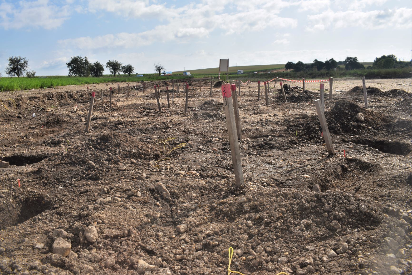 Sídlištní objekty reprezentují především sloupové jamky, stopy nadzemních konstrukcí domů, ohrad a hospodářských staveb (Foto 1). Největší počet reliktů pravěkých staveb byl objeven na jižní straně obce, na mírné terase nad řekou Klejnárkou. Pravěká osada datovaná do období eneolitu byla navíc na severní a severovýchodní straně zabezpečená výrazným příkopem. Na stejném místě byly také objeveny stopy osídlení z mladší a pozdní doby bronzové a z doby římské.
