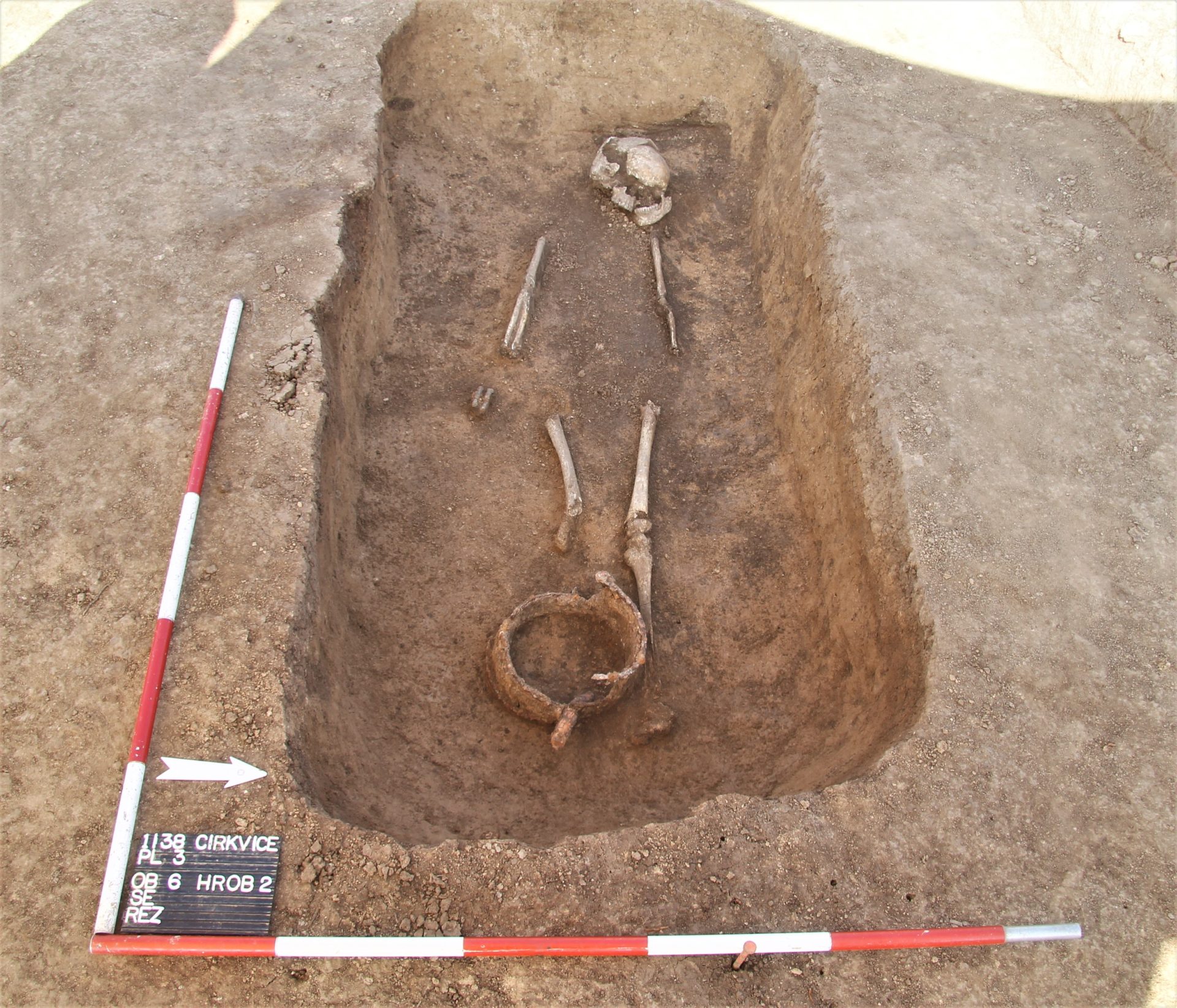 Pozoruhodné jsou pohřby z 9. až 10. století. V hrobových jamách ležely kosterní pozůstatky mrtvých často bez milodarů, jindy vybavené obětinami, jak např. železná vědra, či drobné šperky (Foto 8). K zajímavým nálezům patři také úvozové cesty datované do období středověku až novověku. Cesty jsou svědky vývoje sídlištních sítí, obchodních tras a cestování od středověku až po dnešek, čehož je příkladem i nově stavěná komunikace.