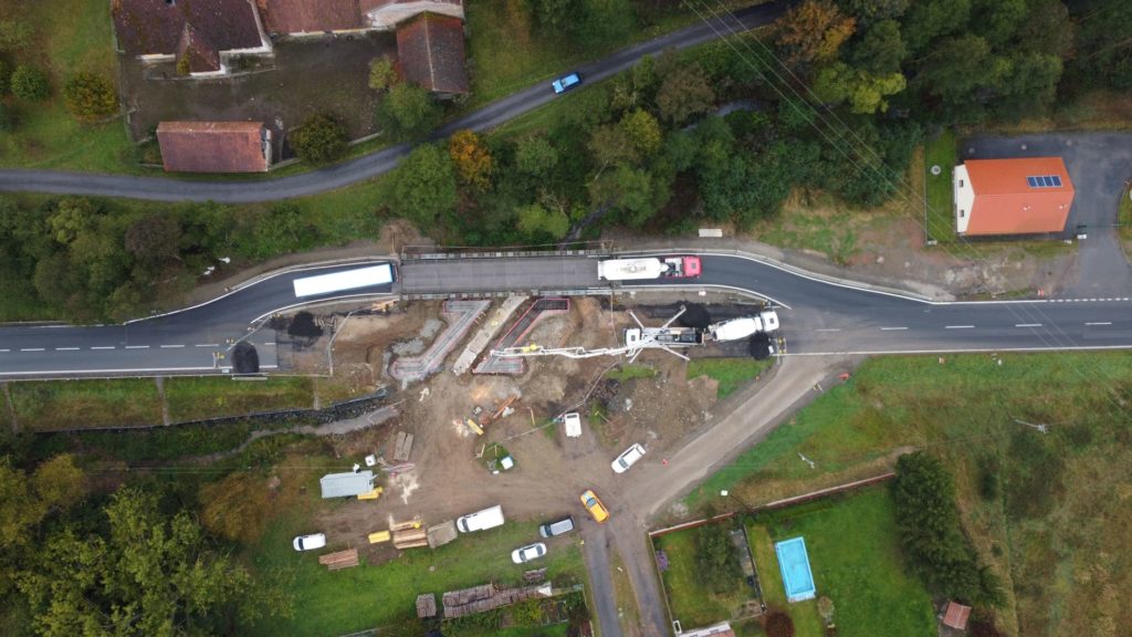 Původní most ev.č.18-019 na silnici I/18 u obce Obory na Příbramsku je kompletně zbourán. Provedli jsme pilotové založení nového mostu a betonáž základů jeho budoucích opěr. Jejich armování, bednění a betonáž bude následovat. Provoz je veden kyvadlově po jednosměrném mostním provizoriu. Dopravní omezení nezpůsobuje zásadnější dopravní komplikace.