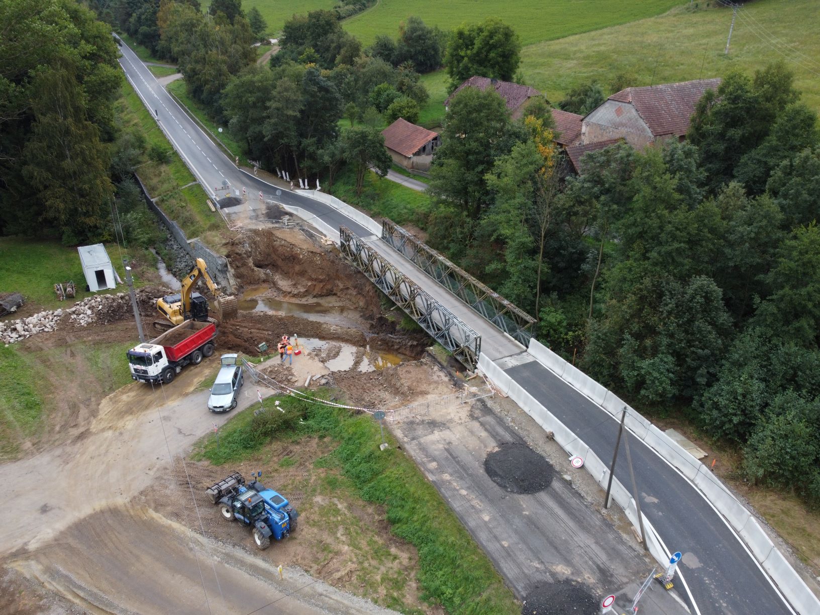 Původní most ev.č.18-019 na silnici I/18 u obce Obory na Příbramsku je kompletně zbourán. Provedli jsme pilotové založení nového mostu a betonáž základů jeho budoucích opěr. Jejich armování, bednění a betonáž bude následovat. Provoz je veden kyvadlově po jednosměrném mostním provizoriu. Dopravní omezení nezpůsobuje zásadnější dopravní komplikace.