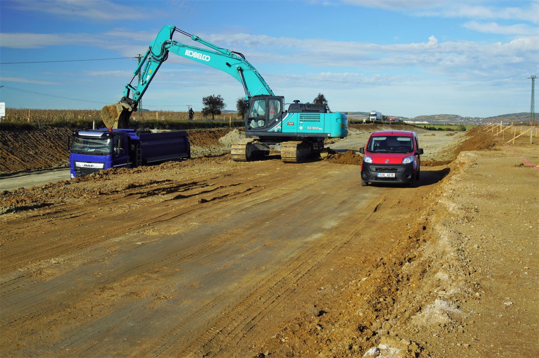 uspořádaní jízdních pruhů 2+1, stoupací pruh přes vrch Hořejší kupa ve směru na Čáslav, což znamená vytěžit větší objem zeminy s ohledem na plánovanou šířku komunikace. Celá trasa bude vedena přibližně v délce 1,5 km v zářezech, 1,8 km v násypech a pouze necelý kilometr v úrovni terénu. Z uvedeného je patrné, že je v průběhu zemních prací třeba provést přesuny velkého objemu zeminy ze zářezů do míst, kde bude komunikace vedena po násypech. To sebou samozřejmě přináší zvýšený pohyb techniky nejen v rámci stavby ale rovněž po silnici I/38 a místních komunikacích. Pouze pro dokreslení množství, tak z výkopů v rámci stavby bude odtěženo celkem 133 028 m3 zeminy. Pokud jde o násypy, probíhá ukládka sypaniny na čtyřech místech budoucí trasy a současně se provádí zlepšování podloží pomocí pojiva. Kde je to třeba, tam probíhají práce na zlepšení parapláně i aktivní zóny komunikace hlavní trasy.