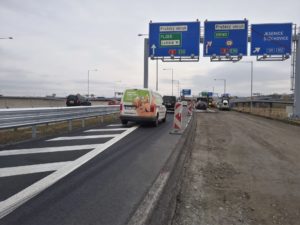 Dnes a ve čtvrtek 11.11. 2021 položíme asfaltové konstrukční vrstvy na posledním opravovaném úseku výjezdové větvě ze silnice I/4 v ulici Strakonická. V pátek a v sobotu instalujeme nová svodidla, položíme vodorovné dopravní značení, provedeme úklid a opravenou křižovatku nákladem 89,7 mil. Kč bez DPH následně v průběhu víkendu uvedeme do provozu.