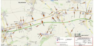 2) Demolice mostu v termínu 20. 11. 2021 od 20:00 hod. do 21. 11. 2021 do 10:00 hod. (úplná uzavírka dálnice). Provoz veden po objízdné trase (silnice II/611).