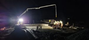 Vybetonovány jsou nové opěry s krátkými zavěšenými rovnoběžnými křídly i hlavní nosná konstrukce v délce 23 metrů. V pátek do pozdních hodin probíhala betonáž říms (viz. foto). Následovat bude položení izolace nosné konstrukce a dále je třeba dokončit obě přechodové oblasti s betonáží přechodové desky. Po odbednění říms bude na most umístěno jeho příslušenství a na mostě a jeho předmostích bude položeno nové asfaltové souvrství. S uvedením mostu do provozu počítáme do Vánoc tohoto roku. Po uvedení mostu do provozu začneme v závislosti a počasí pracovat na opravě objízdné trasy a dotčené části silnice III/3248 pod mostem.