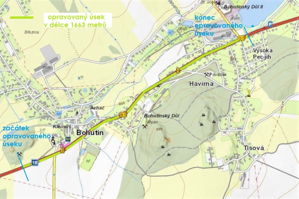 Oprava se bude týkat 1663 metrů komunikace I/18 v provozním staničení mezi kilometry 7,865 a 9,528. Základem je rekonstrukce povrchu vozovky výměnou konstrukčních vrstev na základě provedené diagnostiky. Ta ukázala, že v části dotčeného úseku již vozovka vykazovala vyčerpanou zbytkovou dobu životnosti pro současné zatížení 490 TNV/24 hodin a další část je na hraně životnosti (vyjeté koleje, podélné a příčné trhliny, asfaltové vrstvy vykazují degradaci, vysprávky). Mimo konstrukčních vrstev vozovky se bude pracovat na odvodnění komunikace včetně pročištění a rekonstrukce propustků, pročištění stávajících a zřízení nových uličních vpustí za účelem zajištění plné funkčnosti systému odvodnění. Součástí stavby je rovněž nová opěrná zeď komunikace v délce necelých 100 metrů.