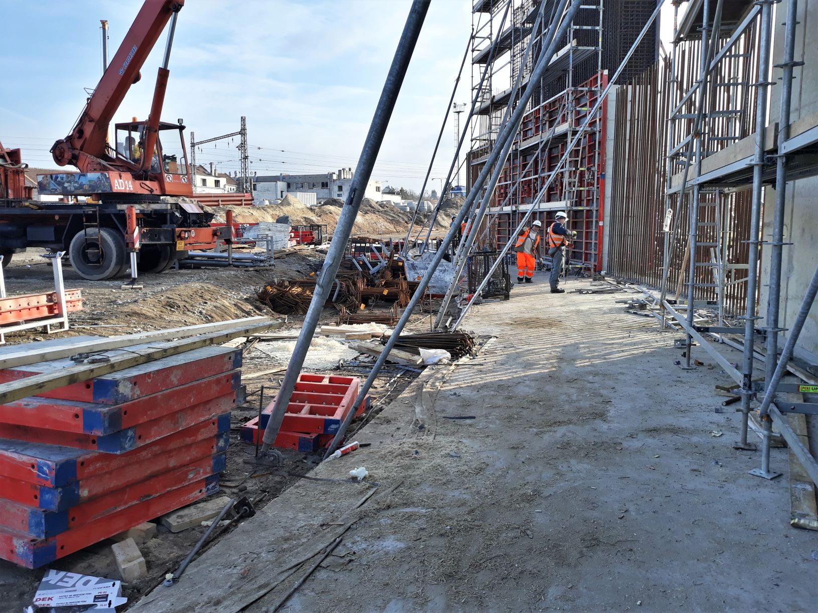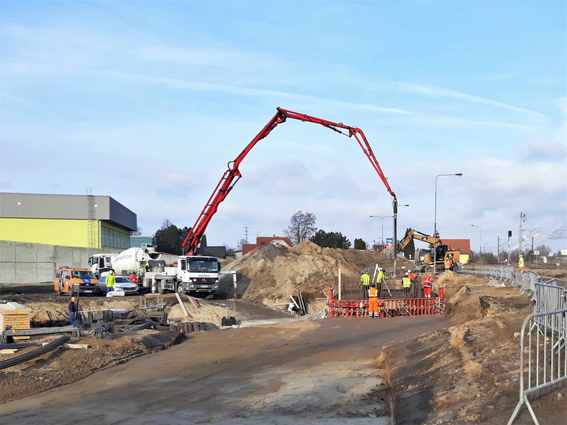 Zahájili jsme a souběžně probíhá výstavba 2pólového mostu, který přenese hlavní trasu obchvatu přes frekventovanou železniční trať. Založení mostu bude hlubinné na pilotech. Masivní mostní opěry, středový pilíř a dlouhá křídla budou monolitická ze železobetonu. Nosnou konstrukci bude tvořit 5 nosníků výšky 1,56 metru s ocelovými příčníky spřažených železobetonovou deskou. Mimo např. zábradlí, budou součástí příslušenství mostu i protihlukové stěny. Po dokončení bude délka mostu necelých 118 metrů a jeho šířka 10 metrů se 7,5 širokou vozovkou. Celková plocha mostu, který se bude klenout 7 metrů nad terénem bude 877,91 m2. Ve čtvrtek proběhla betonáž základu opěry č.1 v ulici Řípská a pracuje se na pilotovém založení pilíře na druhé straně železnice.