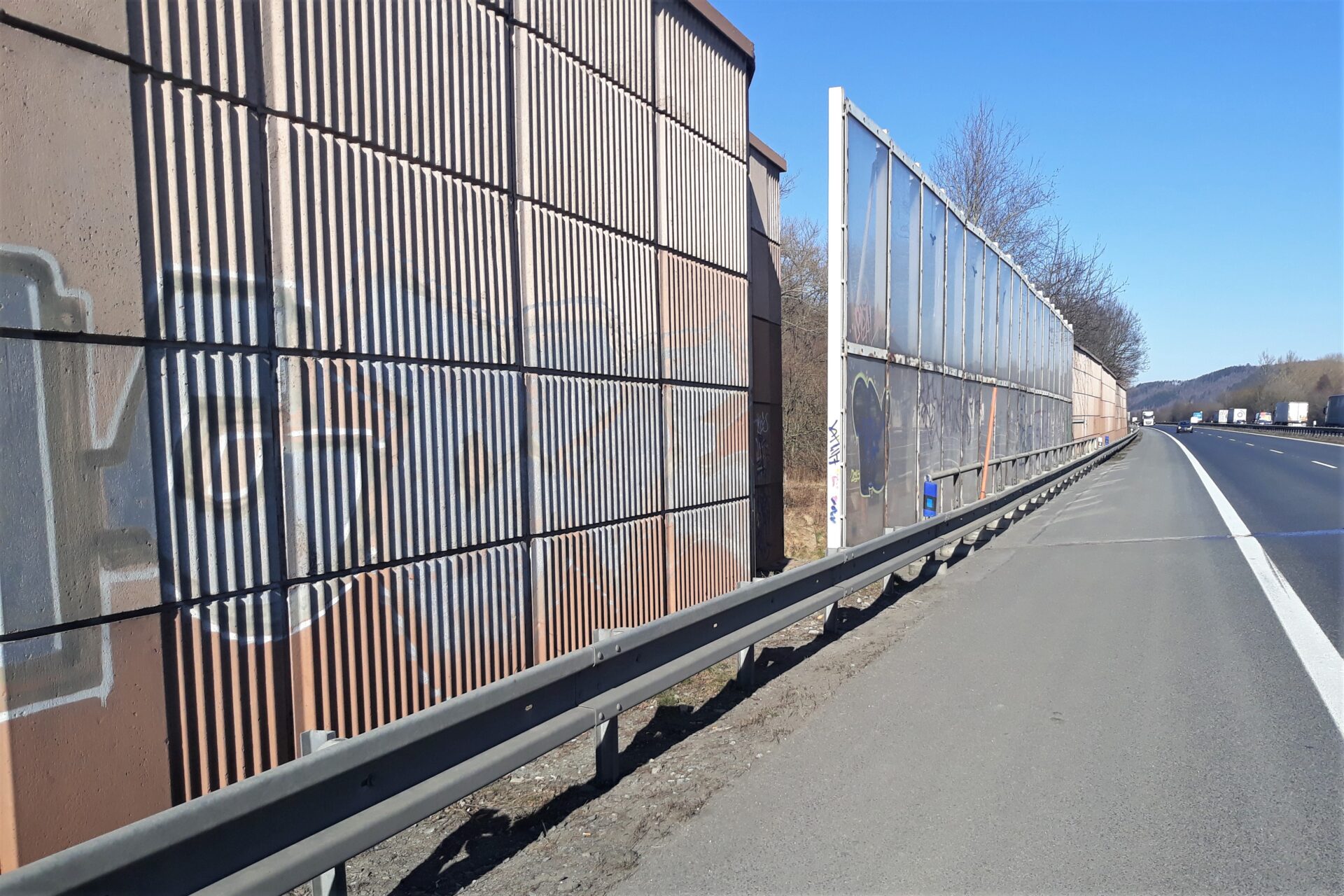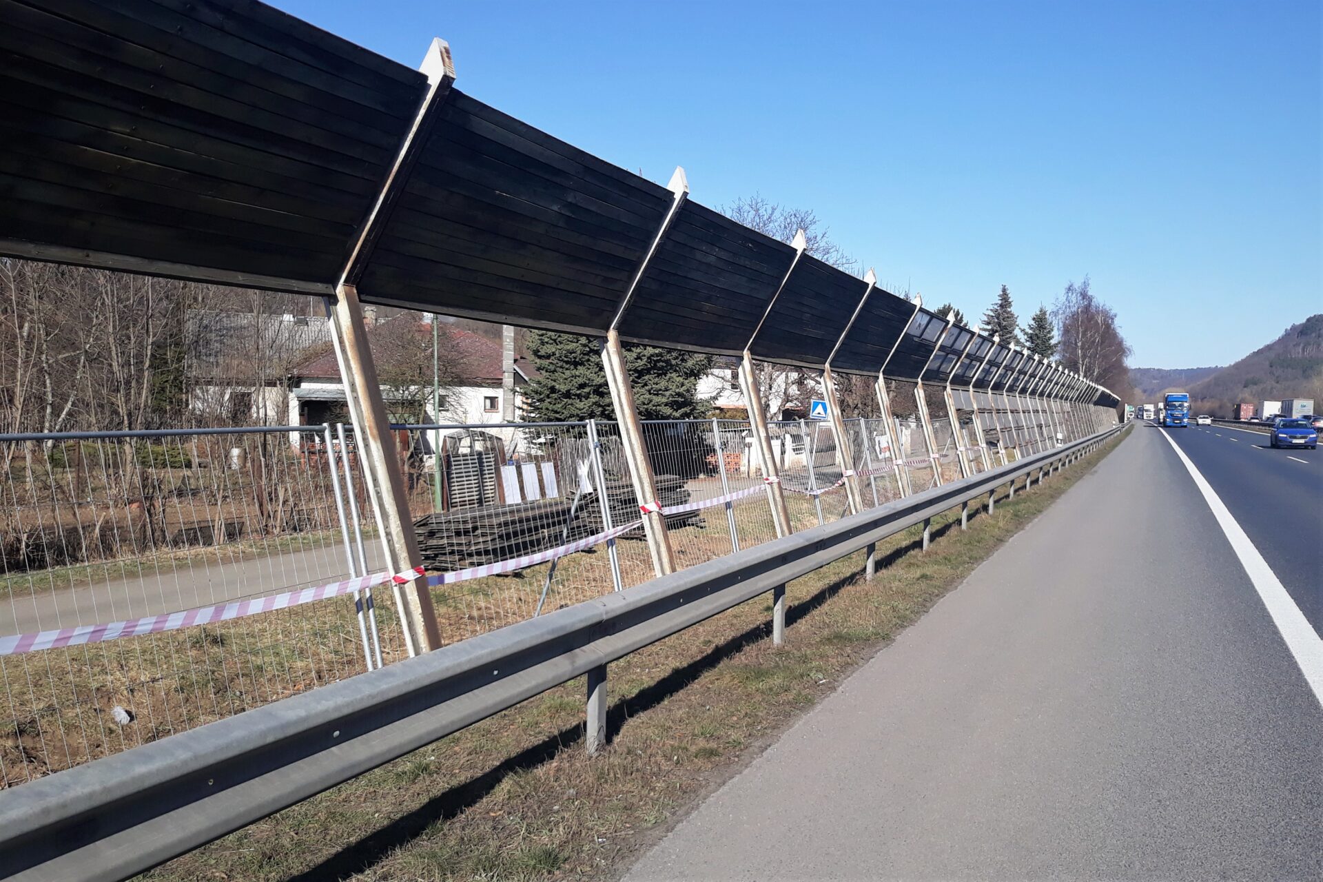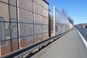 V úseku dálnice D5 u Zdic proběhne oprava 2 protihlukových stěn. První z nich se bude týkat opravy části PHS v km 25,35 až 26,1. Část stěny z betonových prefabrikátů v délce cca. 40 metrů je poškozena a vychýlena ze své polohy v důsledku předchozí dopravní nehody. Stěna je tak nakloněna směrem do vozovky, a ačkoliv nehrozí její akutní samovolné zřícení, přistupujeme k její náhradě. Stávající poškozená část bude postupně demontována po jednotlivých prefabrikátech, odvezena k recyklaci a nahradí ji nová část, která bude tvořena betonovými panely (celkem 10 polí) s profilovanou absorpční lícní stranou.