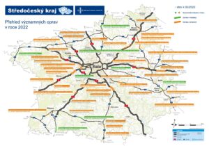 Aktualizovaná mapa významných oprav, které ŘSD ČR plánuje zahájit v průběhu stavební sezóny 2022, ukazuje, že se ve Středočeském kraji bude pracovat na většině silnic I. tříd (mimo sil. I/11, I/19, I/66) a také většině dálniční sítě (mimo D7). Stavební akce zahrnují opravu povrchu vozovek, odvodnění komunikací, mostů a propustků, bezpečnostního vybavení komunikací, doplnění dopravní telematiky atd.