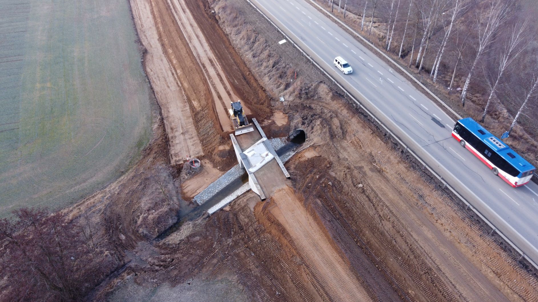 U vedlejší komunikací tedy přeložek silnic III. tříd č. 00335 a 00336 provedeme pokládku vozovkové vrstvy ze štěrkodrti a nestmelené podkladní vrstvy mechanicky zpevněného kameniva. V plánu na tento měsíc je rovněž betonáž opěry mostu přes Konopišťský potok a příprava na jeho podskružení. Na 3 rámových mostech je v plánu betonáž jejich říms.
