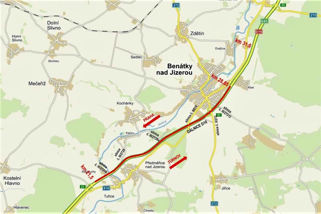 Na základě předchozí diagnostiky vozovky bude v km 28,85-21,5 ve směru z Mladé Boleslavi na Prahu provedena rekonstrukce asfaltobetonového povrchu. V rámci oprav vozovky dojde rovněž k úpravám odbočovacího a připojovacího pruhu na MÚK Benátky nad Jizerou. Jedná se o odbočovací pruh ve směru od Turnova a připojovací pruh ve směru na Prahu. Předmětné pruhy budou prodlouženy a rozšířeny, aby odpovídaly parametrům dle příslušných ČSN.