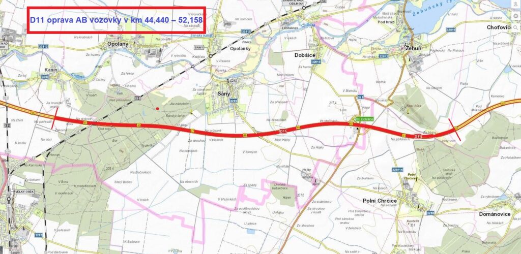 Primárním cílem je oprava stávajícího AB krytu vozovky dálnice D11 v km 44 – 52 v obou jejich jízdních pásech, která vychází z výsledků předchozí diagnostiky. Na vozovce se vyskytuje řada poruch jako jsou její nerovnosti trhliny, lokální vysprávky, podélné trhliny, rozpad obrusné vrstvy, výtluky. Z provedené diagnostiky stavu vozovky také vyplývá, že povrch vozovky je primárně porušen závadami souvisejícími se stářím krytu (komunikace byla postavena v letech 5/2002 – 12/2006), postupnou degradací asfaltového pojiva a trvalými deformacemi. Provedena tak bude výměna obrusné a ložné vrstvy vozovky v následujícím provozním staničení (viz. níže) a součástí opravy je i MÚK Exit 50 Dobšice.
