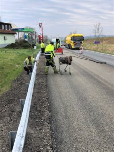 Na silnici I/4 mezi Chrašticemi a hranicí kraje provádíme opravu vozovky a odvodnění souběžně ve dvou úsecích o celkové délce 2 kilometry. V každém z nich aktuálně dokončujeme pokládku nové obrusné vrstvy vozovky. V průběhu dnešního odpoledne a sobotní dopoledne dokončíme instalaci zádržného systému a 23.4.2022 v průběhu odpoledních hodin umožníme již provoz v režimu 1+1. Do pondělního rána 25.4.2022 se v těchto rozpracovaných úsecích bude jezdit obousměrně v rámci průjezdu stavbou s omezenou rychlostí 50 km/h. Kyvadlová doprava se do těchto míst opět postupně vrátí po 06:00 hod. Následně se rozběhne frézování starých konstrukčních vrstev v druhé doposud neopravené polovině vozovek.