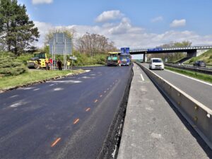 V neděli 3.4.2022 jsme zahájili opravu 7 kilometrů dlouhého úseku jízdního pásu dálnice D10 ve směru na Prahu mezi Benátkami nad Jizerou a Tuřicemi. Momentálně probíhá pokládka nové obrusné vrstvy v pravé polovině jízdního pásu, dokončují se práce na odvodnění a mostních závěrech v této části jízdního pásu. S ohledem na stávající postup prací předpokládáme, že z úterý 3.5.2022 na středu 4.5.2022 zahájíme přestavbu dopravně inženýrského opatření a po jeho dokončení začneme pracovat v levé polovině jízdního pásu.