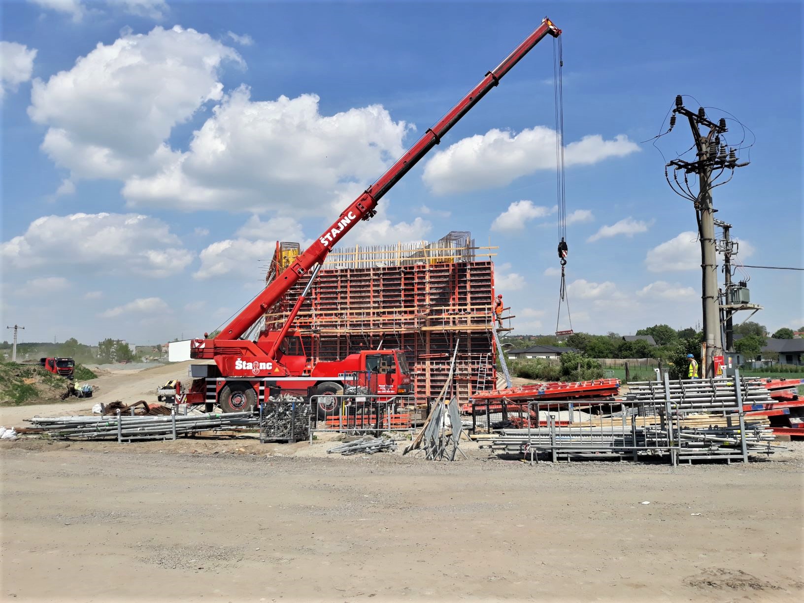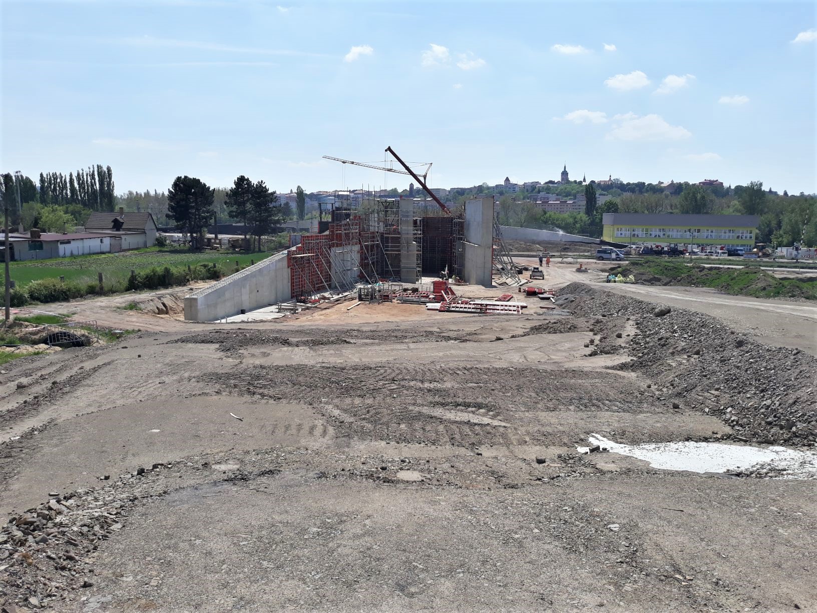Na mostní opěře v ulici Nad Drahou odstraňujeme po její betonáži bednění. V téže ulici byl dokončeni pilíř mostu v těsném sousedství kolejí. Na druhé straně přes železnici probíhá kontinuálně izolace a zasypávání velké opěrné zdi podél fotbalového hřiště a připravuje se betonáž její římsy. Důležitou operací, která nás čeká je víkendové osazení ocelové nosné konstrukce přes 117 metrů dlouhého mostu mimoúrovňové křižovatky, která převede hlavní trasu přes stávající silnici I/9, 2 železniční trati i místní komunikaci. Osazení mostního pole nad železniční tratí budeme realizovat v noci ze soboty 21.5.2022 na neděli 22.5.2022 za vyjednané 12 hodin trvající provozní výluky na železnici. Nosnou konstrukci o váza přes 200 tun bude tvořit 5 nosníků délky 80 a výšky 1,56 metrů s ocelovými příčníky. Do Mělníka se ocelová konstrukce dopravuje po částech a její montáž bude provedena až v místě stavby. Nosná konstrukce se nebude osazovat do konečné výšky, ale o něco výše, aby bylo možné následně osadit např. ložiska mostu. Do své konečné polohy bude poté konstrukce spuštěna pomocí hydrauliky. Dalším milníkem stavby, který se blíží, bude zprovoznění okružní křižovatky na straně od Liběchova. To zatím předpokládáme začátkem června 2022.