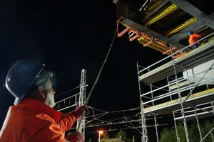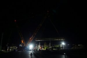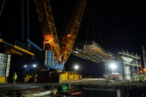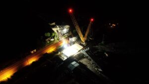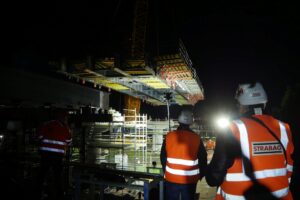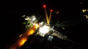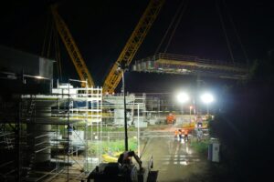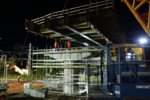 I při ztížených klimatických podmínkách (silný vítr a déšť), které osazení provázeli, je nosná konstrukce na svém místě. Může tak dojít k osazení poslední části nosné konstrukce a jejich spojení v jeden celek a dalších navazujících kroků při výstavbě horní stavby mostu. Video z průběhu této stavební operace o fotky z některých zajímavých momentů naleznete níže.