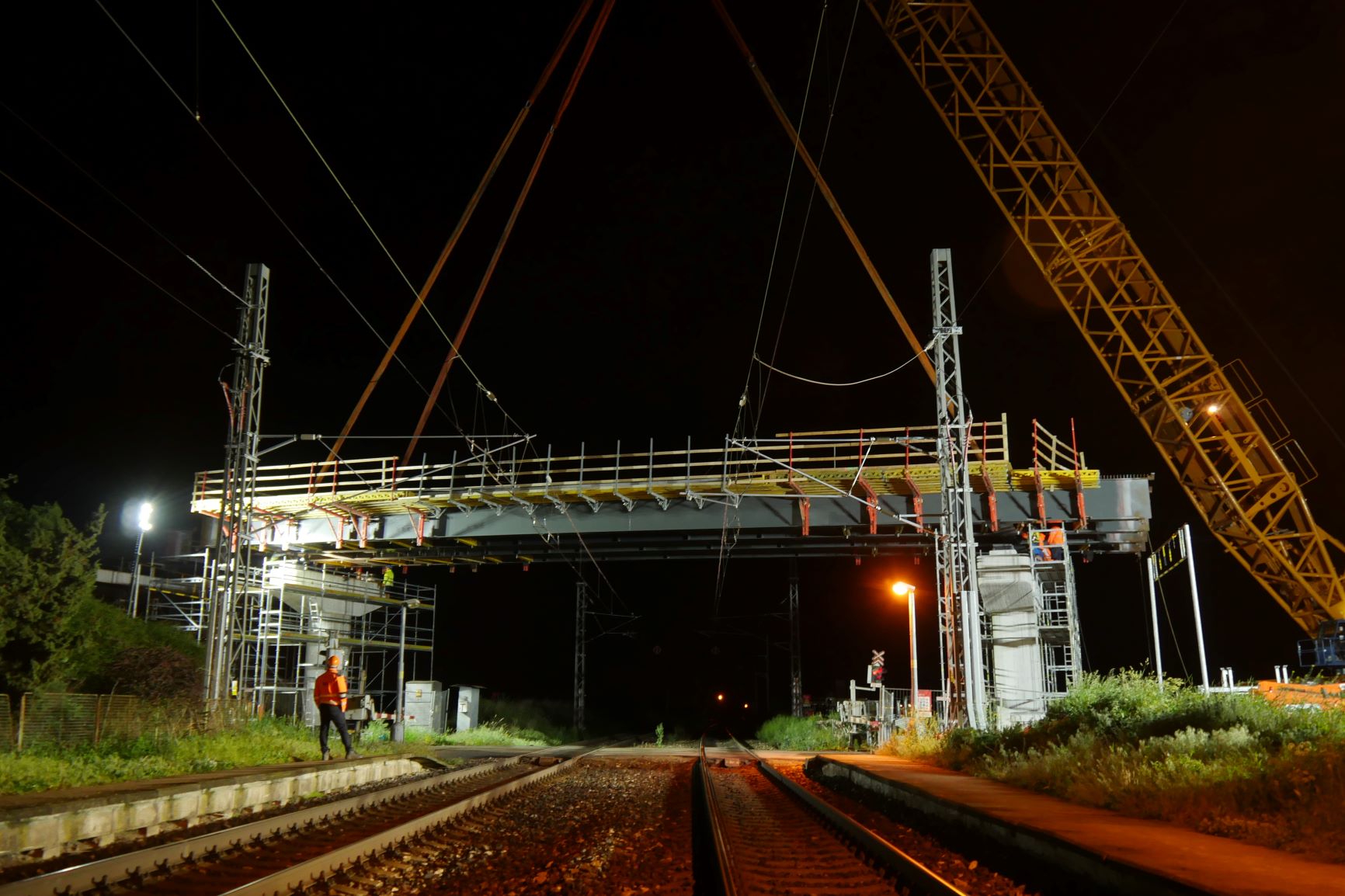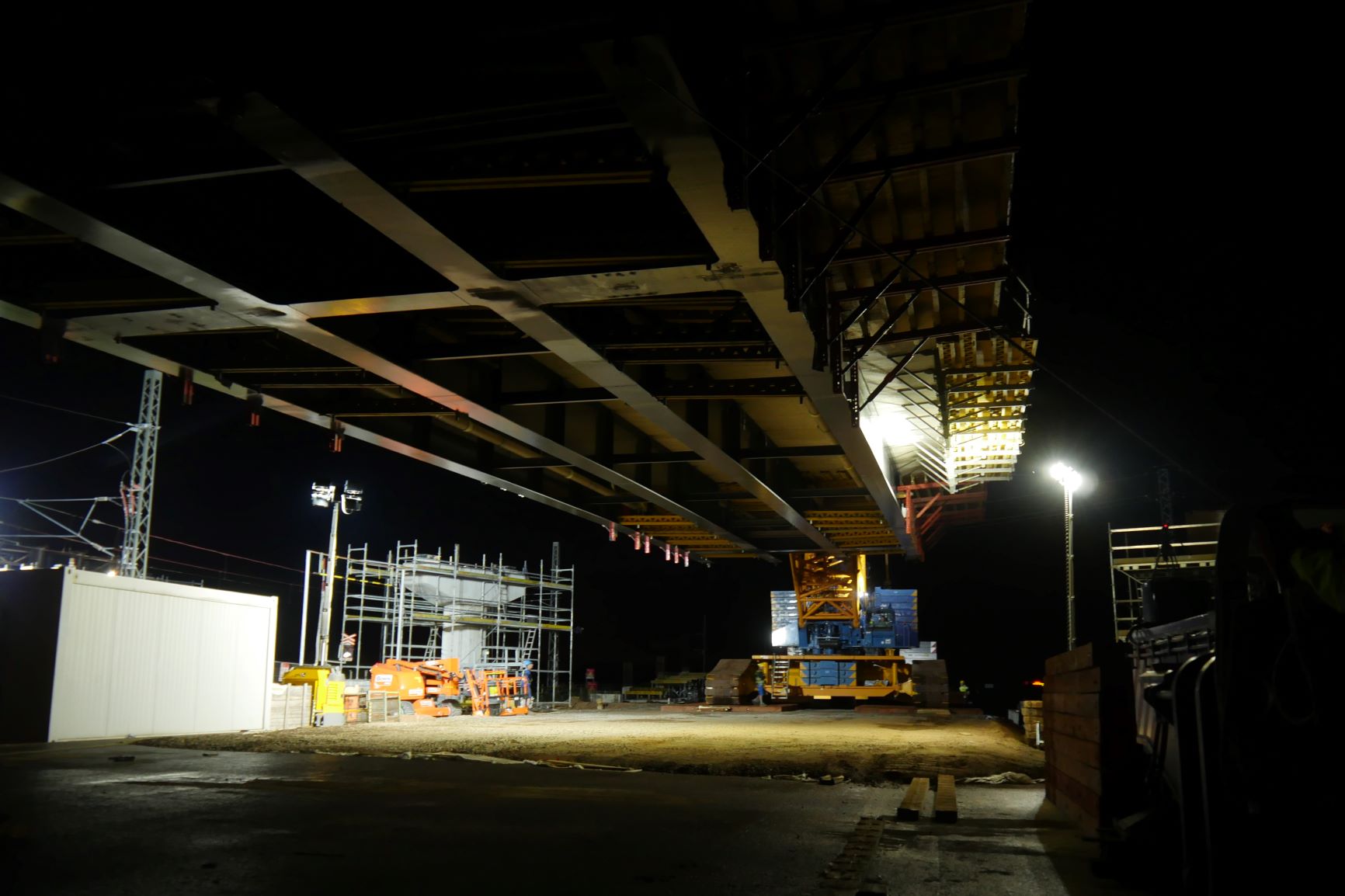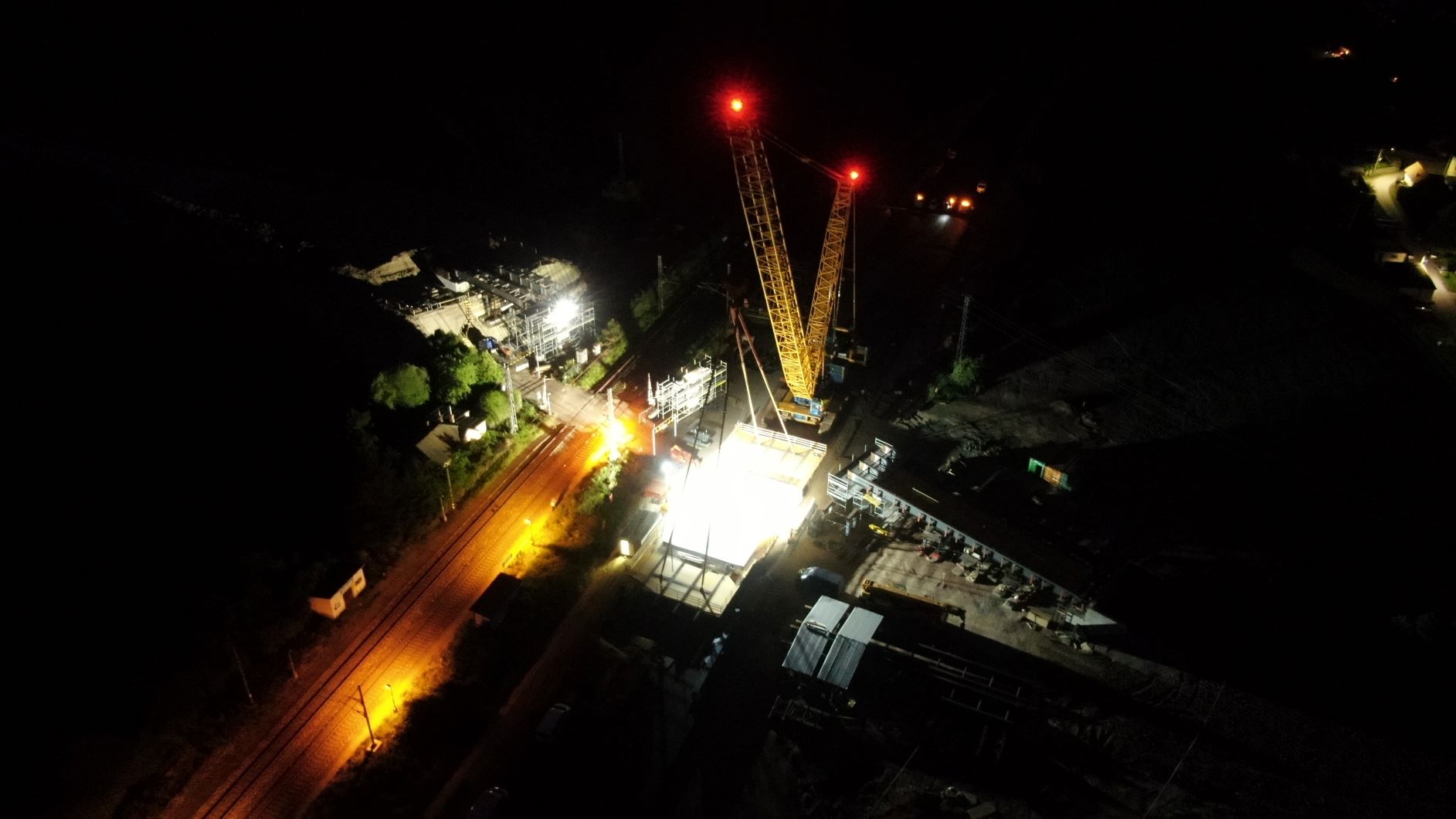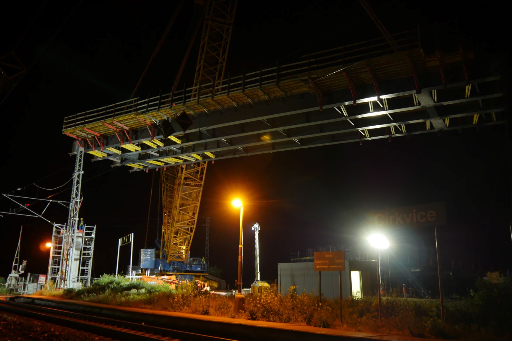 Z pátku 20.5.2022 na sobotu 21.5.2022 jsme v rámci několika hodinové provozní výluky na železniční trati Praha-Čáslav-H. Brod-Brno provedli osazení nosné konstrukce mostu, který bude mimoúrovňově převádět silnici III/03321 přes železnici a soudní hlavní trasu budovaného obchvatu. Celková délka mostu bude 129,5 metrů s celkovou délkou nosné konstrukce 118 metrů. Nosná konstrukce druhého pole mostu, které se osazovalo vysokotonážním jeřábem Liebherr LG1750, je dlouhá 38,9 metrů. Na místo instalace byla dopravena ve 2 dílech a po jejich montáži vážila 64t. Betonáží spřažené desky, osazením pochozí lávky pro následnou instalaci říms mostu a dalším vybavením byla její hmotnost před osazením 240t.Celá operace, která započala v pátek ve 23:30 byla ukončena před 02:00 druhého dne.