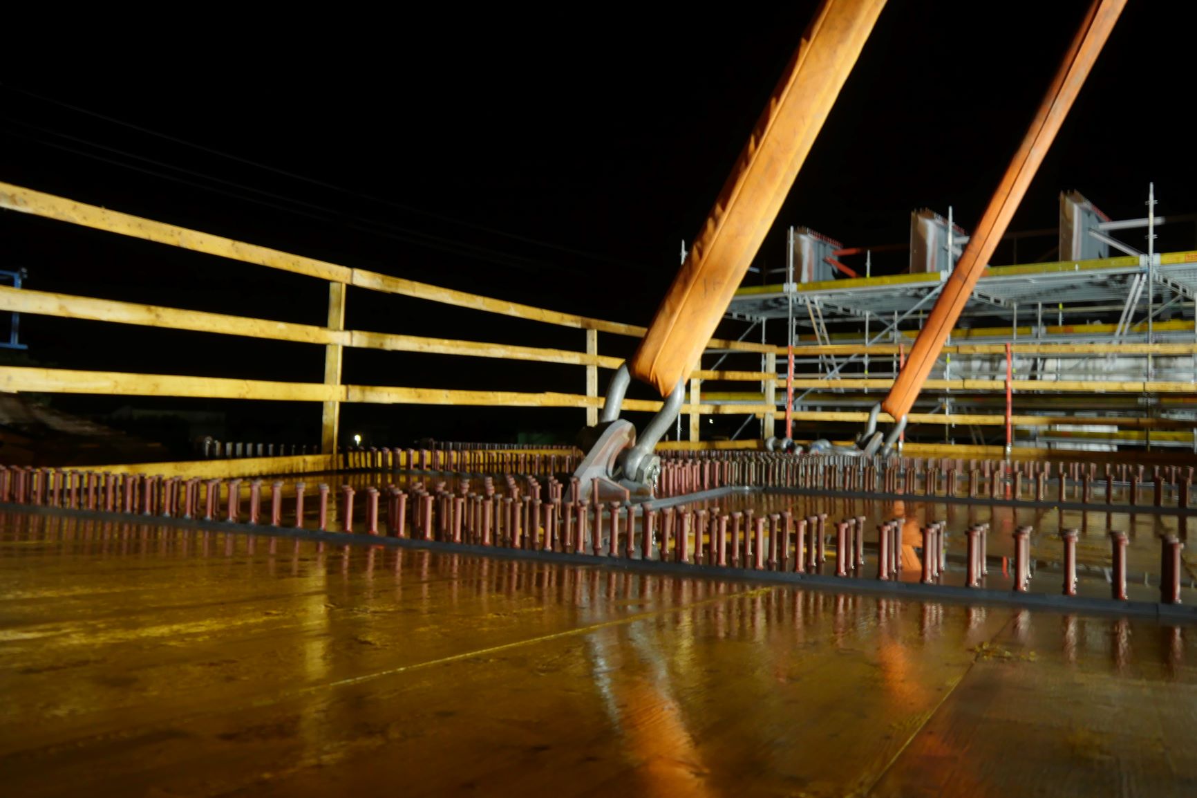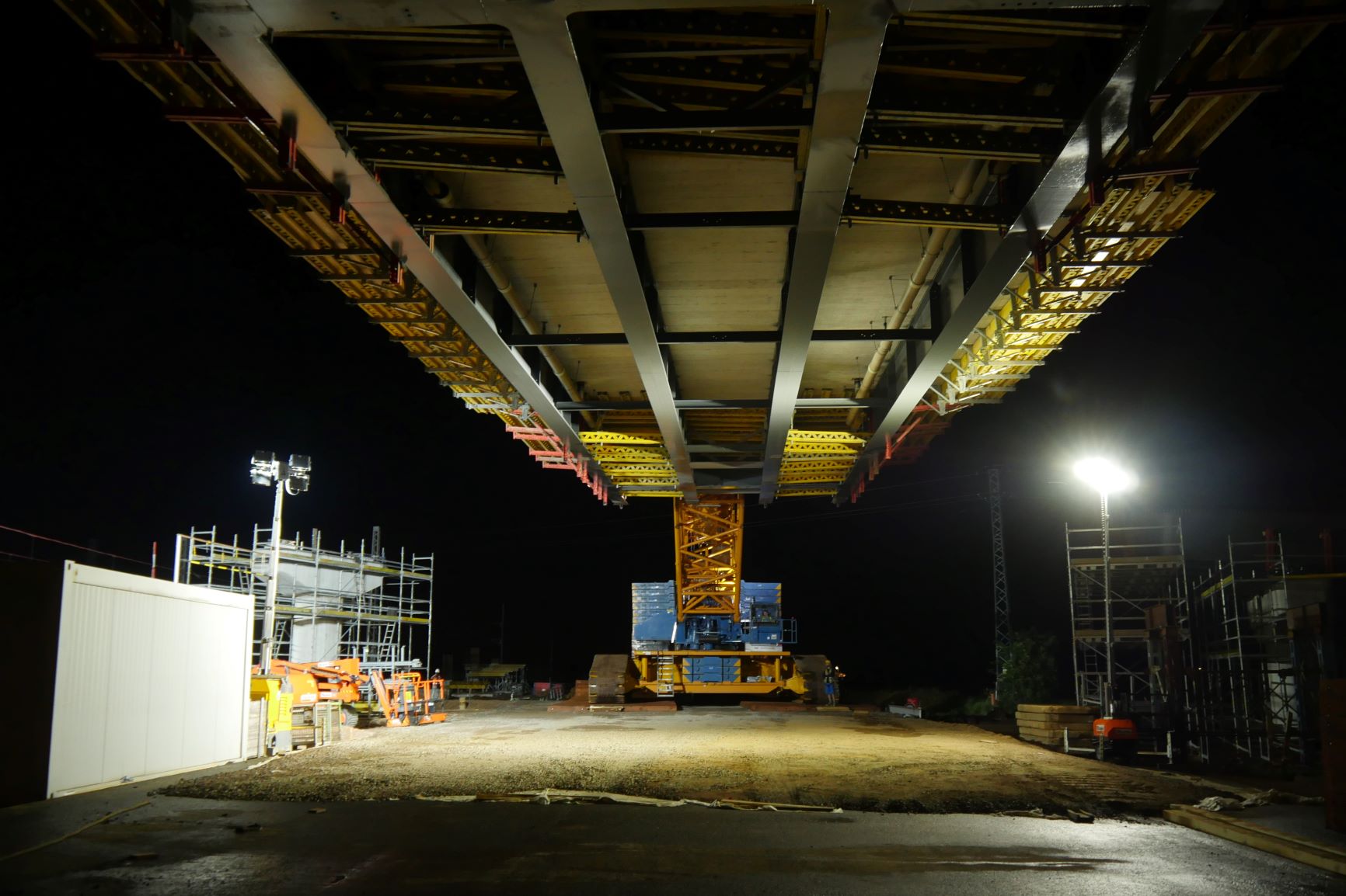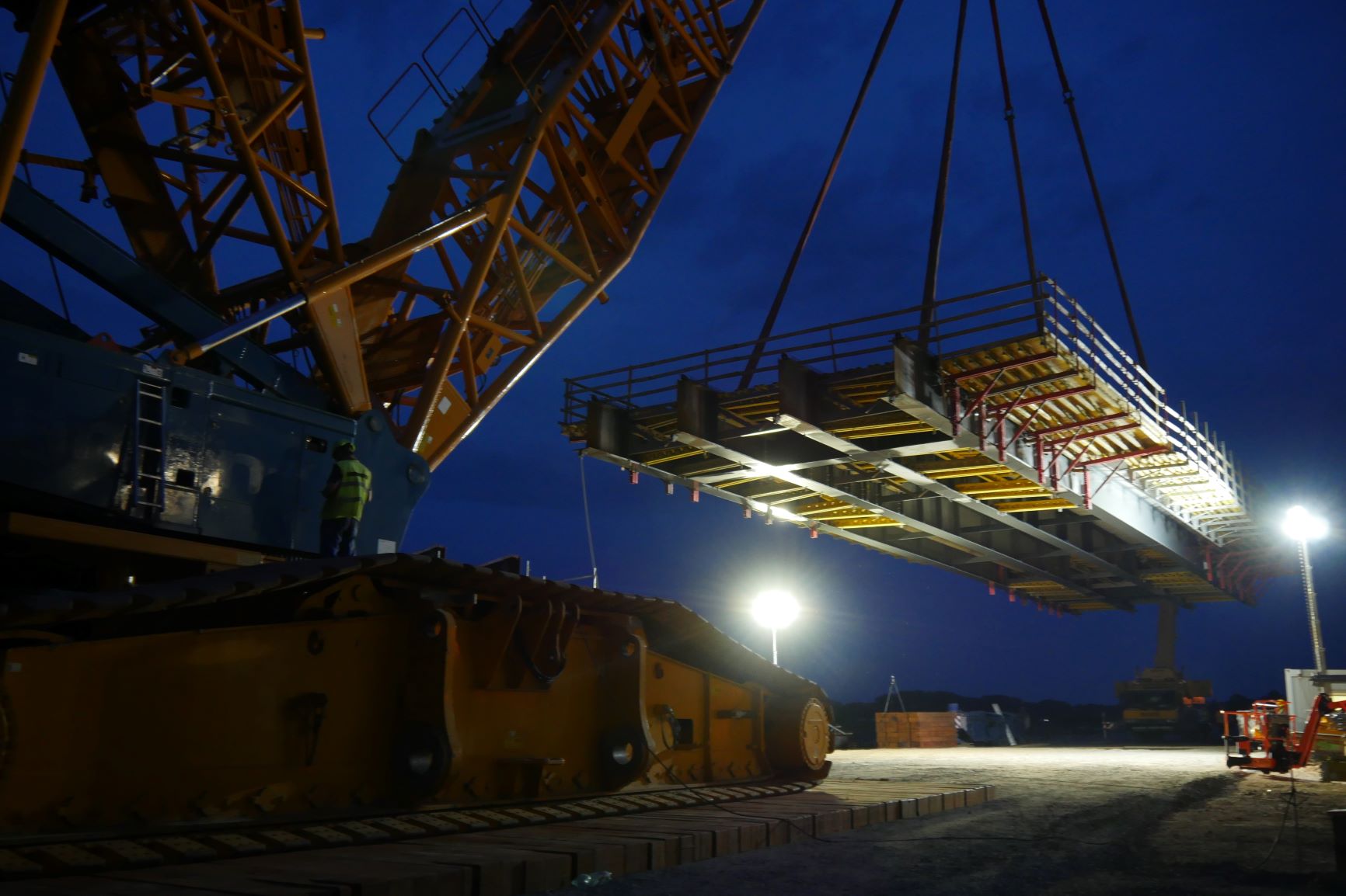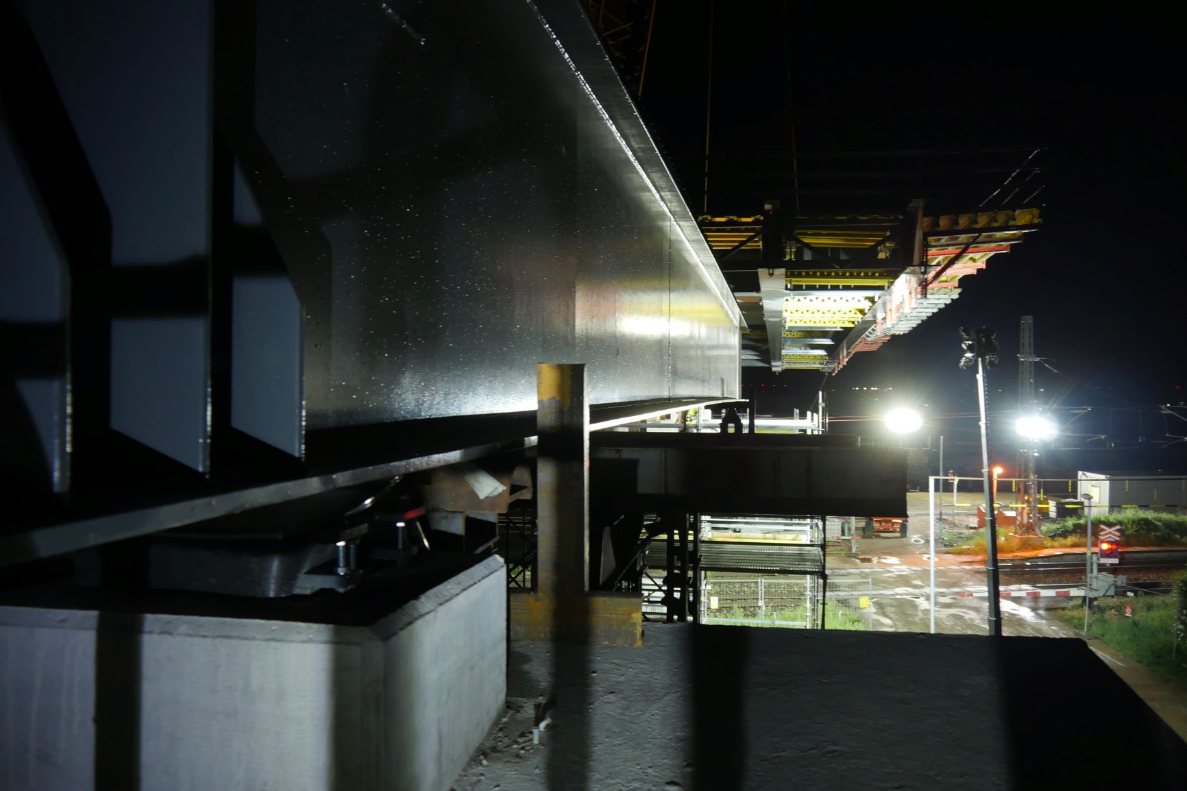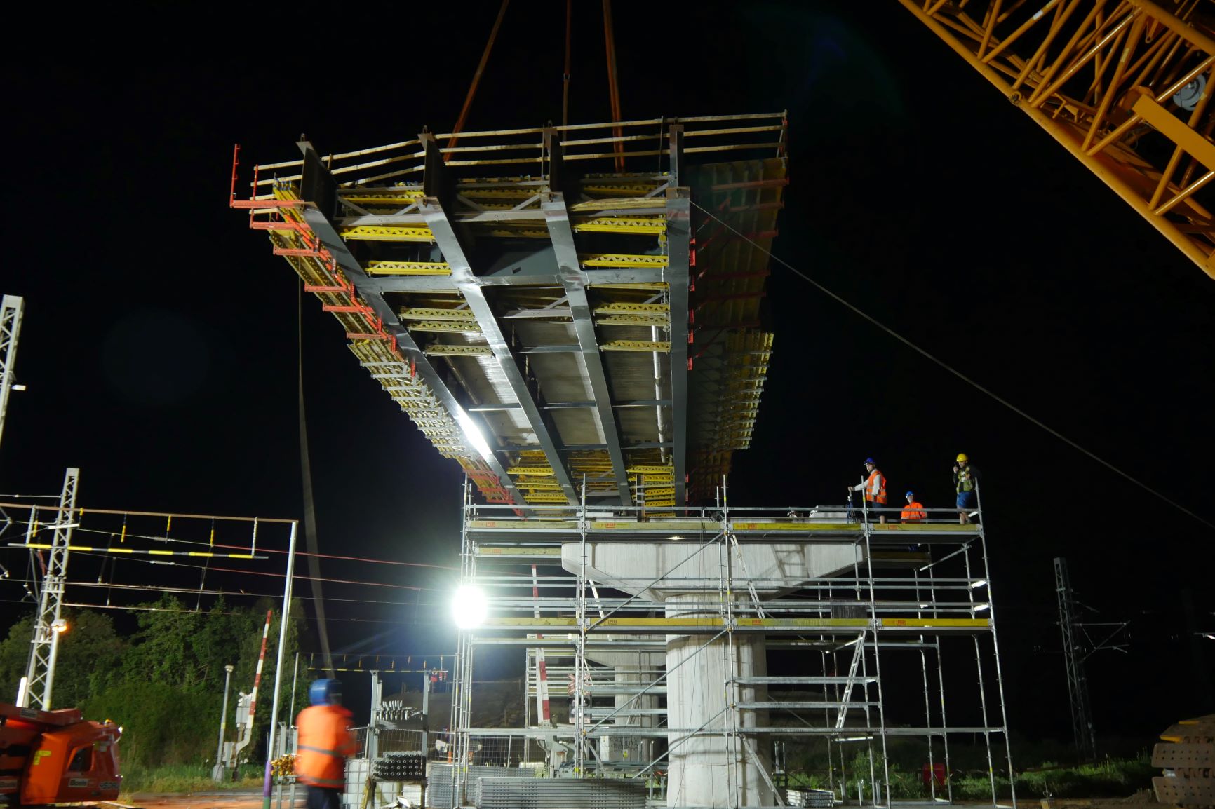 I při ztížených klimatických podmínkách (silný vítr a déšť), které osazení provázeli, je nosná konstrukce na svém místě. Může tak dojít k osazení poslední části nosné konstrukce a jejich spojení v jeden celek a dalších navazujících kroků při výstavbě horní stavby mostu. Video z průběhu této stavební operace o fotky z některých zajímavých momentů naleznete níže.