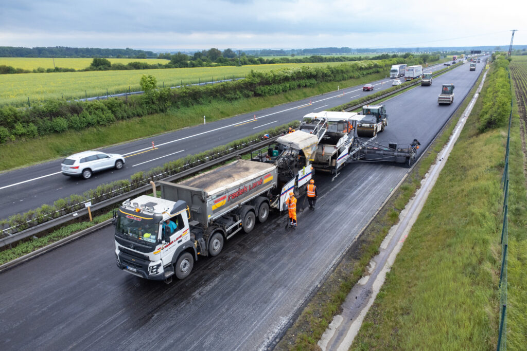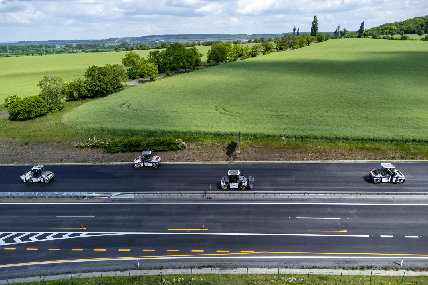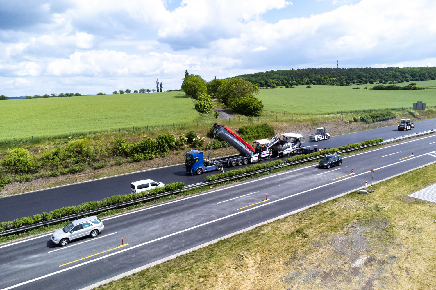 V km 44-52 dokončujeme opravu povrchu vozovky v obou jízdních pásech. ve směru na Prahu tak probíhají závěrečné práce celé stavby a i zde zahájíme demontáž dopravně inženýrského opatření. Nejpozději o půlnoci ze soboty 28.5.2022 na neděli 29.5.2022 byste zde měli projet po opraveném povrchu bez omezení.