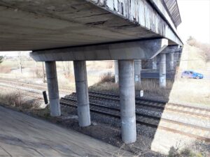 V roce 2021 jsme provedli demolici mostu ev.č. 32-002a u Činěvsi na Nymbursku a nový most uvedli do provozu ještě v prosinci téhož roku. Ve středočeské části silnice I/32 pracujeme na přípravě opravy dalších mostů, kde je nejblíže k realizaci celková oprava mostu 32-001e přes železniční trať Praha-Lysá nad Labem-Kolín a silnici III/32812 u obce Choťánky. V rámci této zakázky jsme ve veřejném výběrovém řízení na zhotovitele obdrželi celkem 7 nabídek a vybrali zhotovitele. Nejvýhodnější ekonomickou nabídku podala společnost Chládek a Tintěra, Pardubice a.s., která se zavázala opravu realizovat za 79,89 mil. Kč bez DPH s dobou uvedení stavby do provozu za 210 kalendářních dnů. Most z roku 1990 byl připraven k zahájení opravy v letošní stavební sezóně, ale jelikož se pro letošní rok nepodařilo vyjednat provozní výluku na železniční trati pod ním, zahájíme práce na přelomu 2.-3. čtvrtletí 2023.