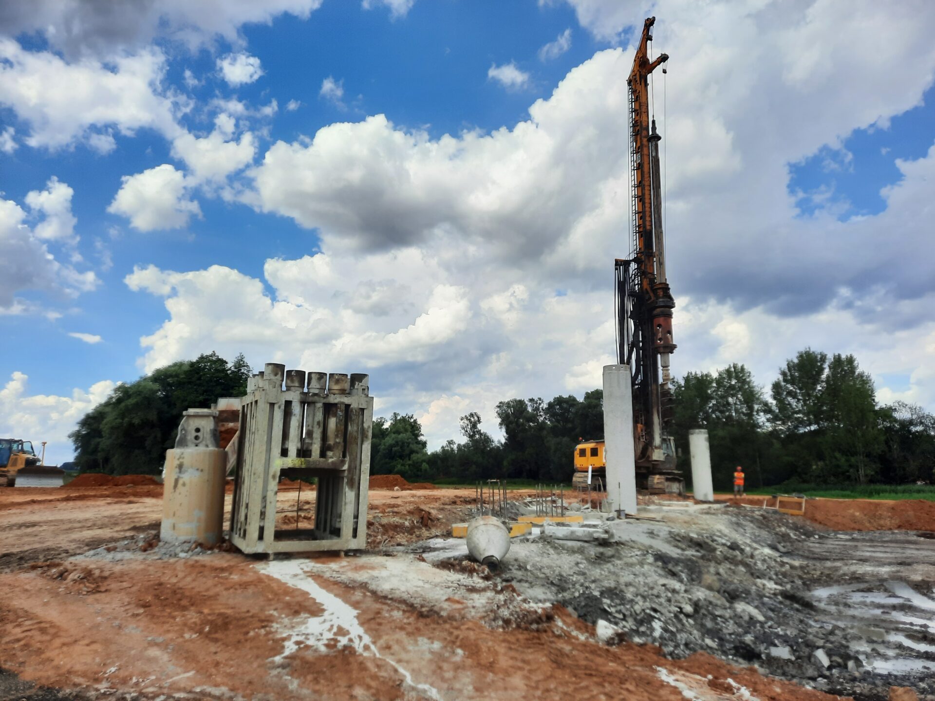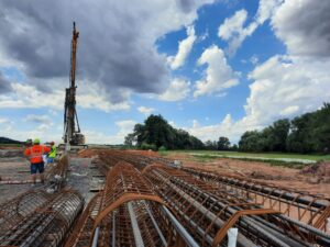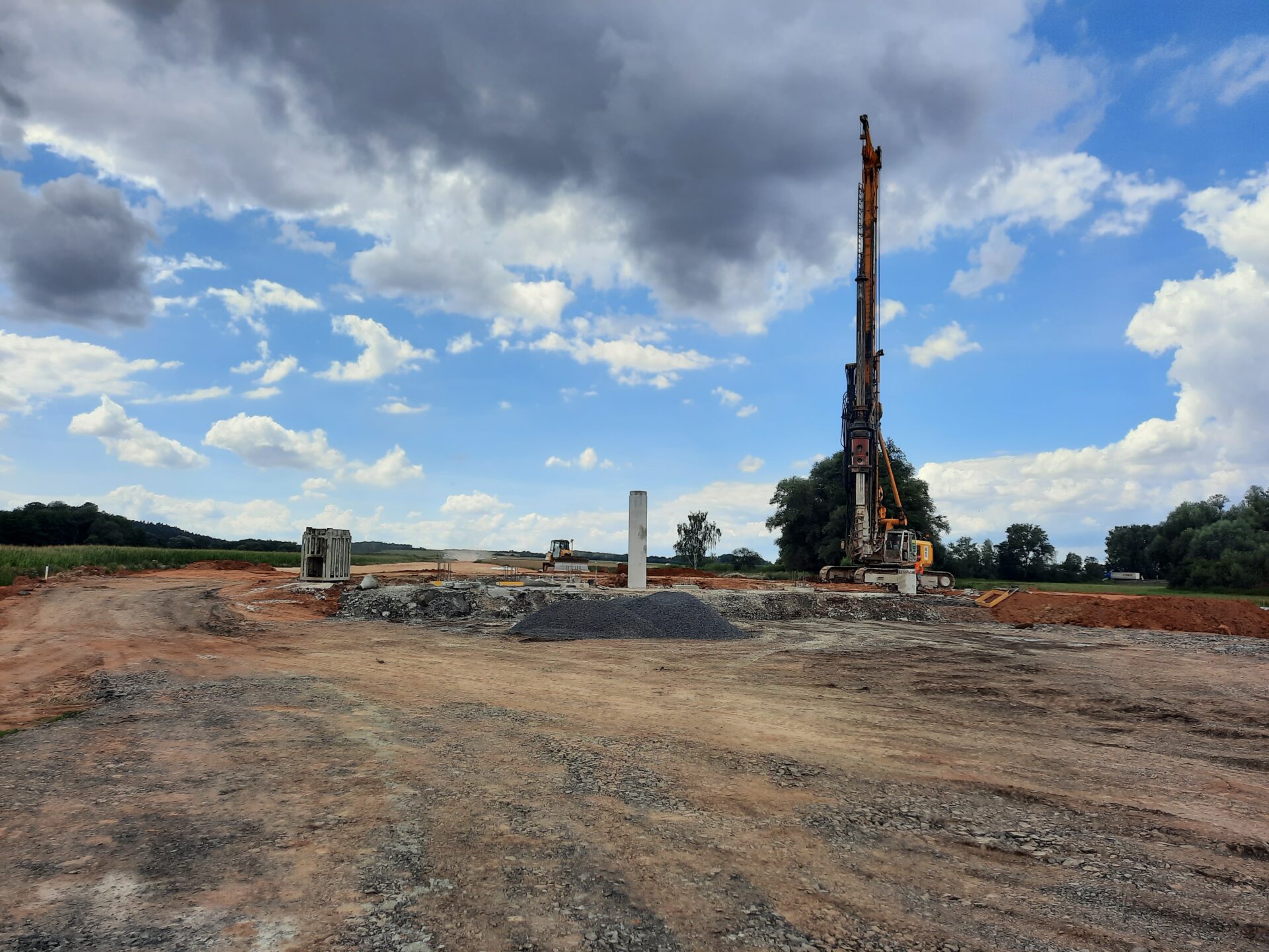 Na obchvatu Krupé na Rakovnicku jsme v trase budoucí dálnice D6 zahájili výstavbu mostu (estakády) v délce 805 metrů, jehož nosná konstrukce bude mít 23 polí. Prvním krokem je realizace založení jeho spodní stavby. To je v tomto případě pilotové a v celé délce ho bude tvořit 524 pilot o průměru 900 milimetrů. Ty je třeba nejdříve vyvrtat do hloubky 14 až 20 metrů v závislosti na geologickém podloží v místě vrtu. Piloty jsou realizovány pomocí vrtné soupravy za vkládání pažnice, která chrání vrt před zasypáním následuje vkládání arma-košů a betonáž. Práce na pilotovém založení tohoto nejdelšího mostu předpokládáme v délce šesti měsíců, přičemž výstavba celého mostu bude trvat necelé dva roky. Estakáda je jedním z 5 mostních objektů v trase dálnice okolo Krupé. 4 mosty budou dálniční a 1 z mostů bude dálniční těleso překlenovat jako součást mimoúrovňové křižovatky Krupá. Jejich založení probíhá postupně souběžně.