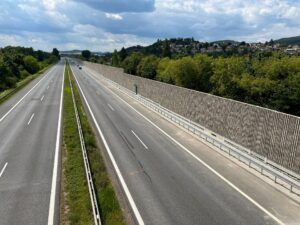 31.7.2022 jsme uvedli do provozu novou protihlukovou stěnu v km 26,127-27,470 dálnice D5 za 51,73 mil. Kč bez DPH, která v úseku podél Zdic nahradila tu původní a již nevyhovující stěnu ze dřeva. Nová 1344 metrů dlouhá a 4,5 metrů vysoká stěna s 9 únikovými východy je osazena železobetonovými soklovými panely uloženými na gabionové zídky. Na soklové panely jsou osazeny zvukově absorpční desky ze železobetonu. Dokončovací práce ještě probíhají v prostoru za stěnou, jejichž dokončení předpokládáme koncem tohoto měsíce.