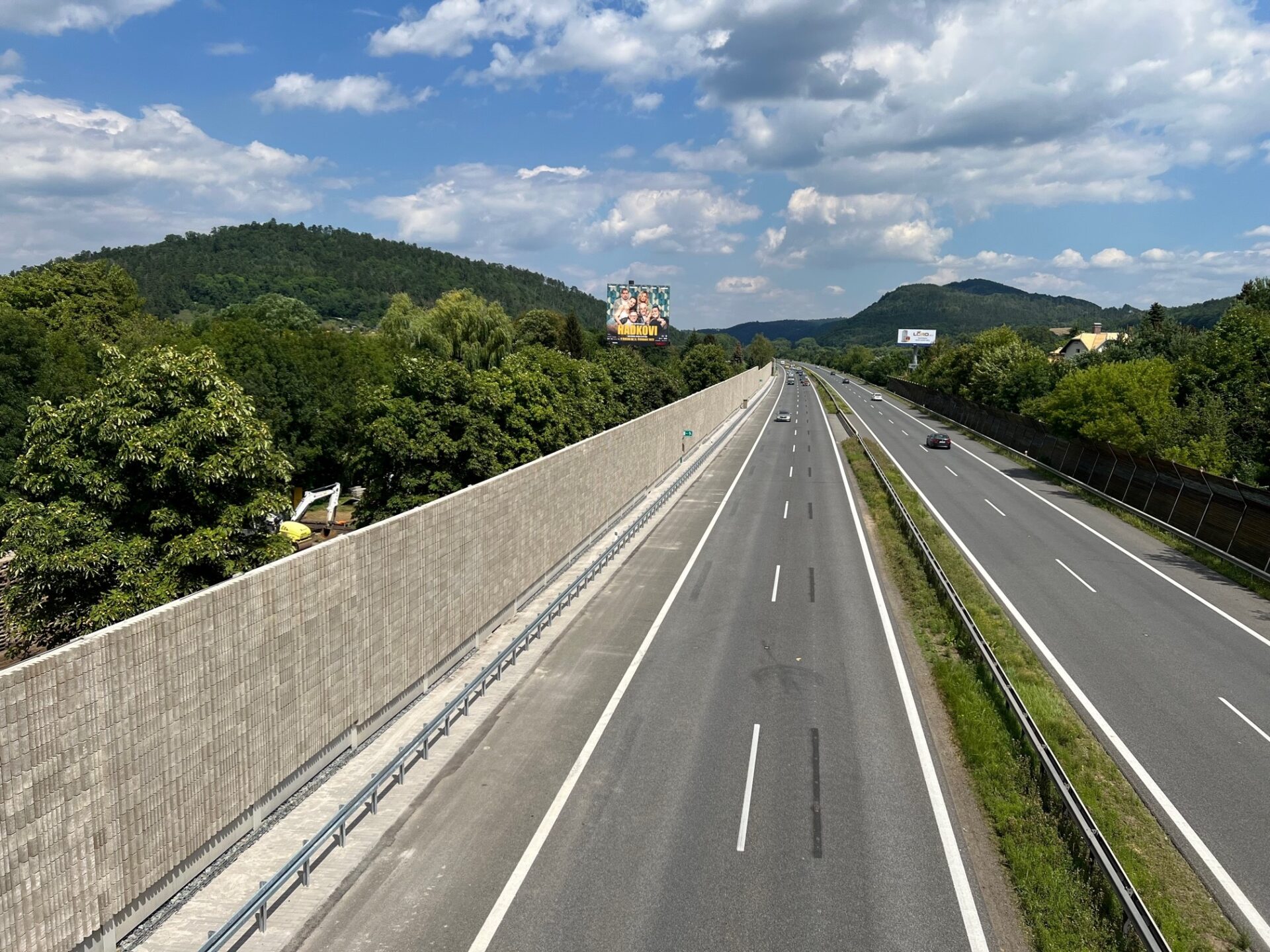 31.7.2022 jsme uvedli do provozu novou protihlukovou stěnu v km 26,127-27,470 dálnice D5 za 51,73 mil. Kč bez DPH, která v úseku podél Zdic nahradila tu původní a již nevyhovující stěnu ze dřeva. Nová 1344 metrů dlouhá a 4,5 metrů vysoká stěna s 9 únikovými východy je osazena železobetonovými soklovými panely uloženými na gabionové zídky. Na soklové panely jsou osazeny zvukově absorpční desky ze železobetonu. Dokončovací práce ještě probíhají v prostoru za stěnou, jejichž dokončení předpokládáme koncem tohoto měsíce.
