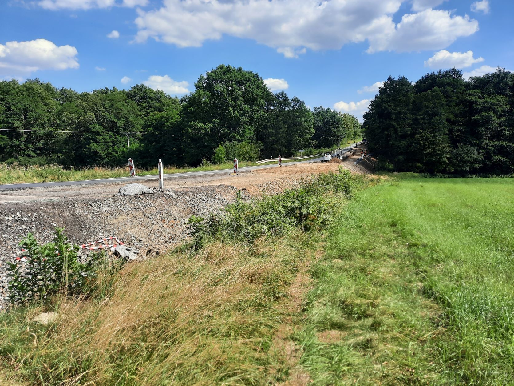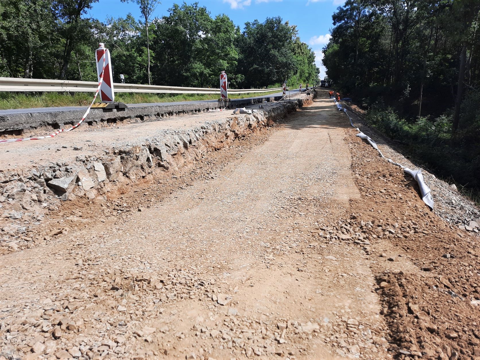 V rámci opravy 5ti kilometrů povrchu vozovky a odvodnění silnice I/18 mezi Líchovy a Břekovou Lhotou pracujeme souběžně na posledních dvou úsecích a v obou v jízdním pruhu ve směru na Sedlčany. První úsek na hranici obce Dublovice ve směru od Příbrami je dlouhý cca 800 metrů. Ten druhý mezi odbočkou na Břekovu Lhotu a odbočkou na Příčovy je dlouhý 700 metrů. Jedná se o úseky, kde se ve zvýšené míře rozšiřuje zemní těleso komunikace (bude tomu tak po obou stranách) a současně probíhají i rozsáhlé sanace konstrukčních vrstev vozovky, včetně částečné příkopové drenáže. U Dublovic je koncem příštího týdne už plánovaná recyklace za studena a po nutné technologické přestávce bude zahájena pokládka nových asfaltových konstrukčních vrstev. Provoz je v obou pracovních částech řízen kyvadlově světelnou signalizací. S uvedením opraveného úseku silnice I/18 jako celku do provozu počítáme v závěru září 2022.