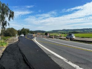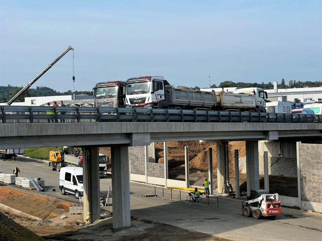 V první polovině tohoto týdne proběhla rovněž zatěžovací zkouška mostu na přeložené silnici III/00336, který uvedenou komunikaci převádí přes hlavní trasu obchvatu. 4 nákladní vozidla, každé o hmotnosti 32 tun, zatížila nosnou konstrukci mostu celkem 128 tunami. Po provedeném měření a zaznamenání požadovaných dat vozidla opět nosnou konstrukci opustila, aby se sem znovu po 30-60 minutách vrátila a měření se opakovalo. Tak tomu bylo celkem 4 krát. Zatěžovací zkouška prověřila komplexně stav celé mostní konstrukce a spolupůsobení jednotlivých prvků a její výsledky jsou v tomto případě význam podkladem pro kolaudaci mostního objektu a jeho uvedení do provozu. Slavnostní uvedení obchvatu Olbramovic plánujeme v pátek 30.9.2022 od 15:00 hodin.