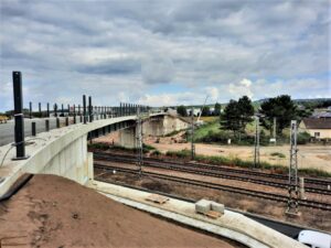 2. stavba obchvatu Mělníka na silnici I/16, I/9 se blíží k svému termínu uvedení do provozu. To plánujeme v celé délce 1 kilometr dlouhé stavby na pondělí 26.9.2022. Do té doby je třeba dokončit na mostě přes železniční trať osazení protihlukové stěny. Na mostě i v dalších částech zbývá také instalovat zábradlí a zádržný systém. Dokončuje se odvodnění, veřejné osvětlení a profilace svahů. Před uvedením do provozu bude třeba ještě osadit svislé dopravní značení a položit vodorovné dopravní značení. Nicméně další dokončovací práce v podobě aplikace hydroosevu, výsadby zeleně atd. budou pokračovat i nadále již za provozu na nové části obchvatu.