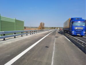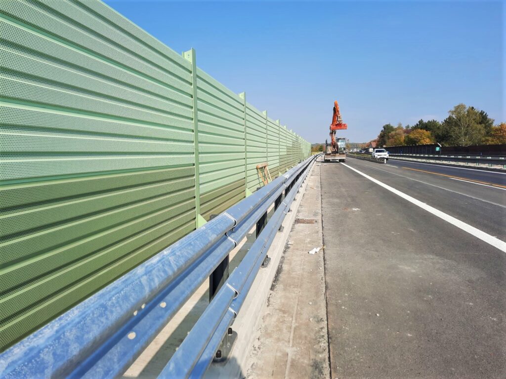 Na dálnici D10 dokončujeme první část opravy protihlukové stěny u Benátek nad Jizerou v km 28,865 – 29,630. Od 7.6.2022 probíhají práce v levém jízdním pásu dálnice, během nichž jsme ve středovém dělícím pásu provedli novou dešťovou kanalizaci a nové římsy mostu ev. č. 10-022c. Most dostal v levém jízdním pásu rovněž nové mostní závěry se sníženou hlučnosti a proběhla sanace jeho určených stavebních částí. Rekonstrukcí prošla také levá opěrná zeď a vozovka v délce 800 metrů. V posledních dnech se pracuje zejména na osazení panelů nové PHS v délce 236 metrů a instalaci zádržného systému.