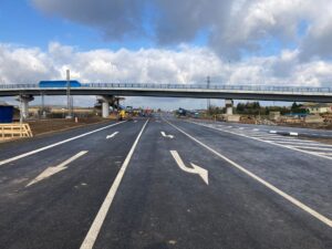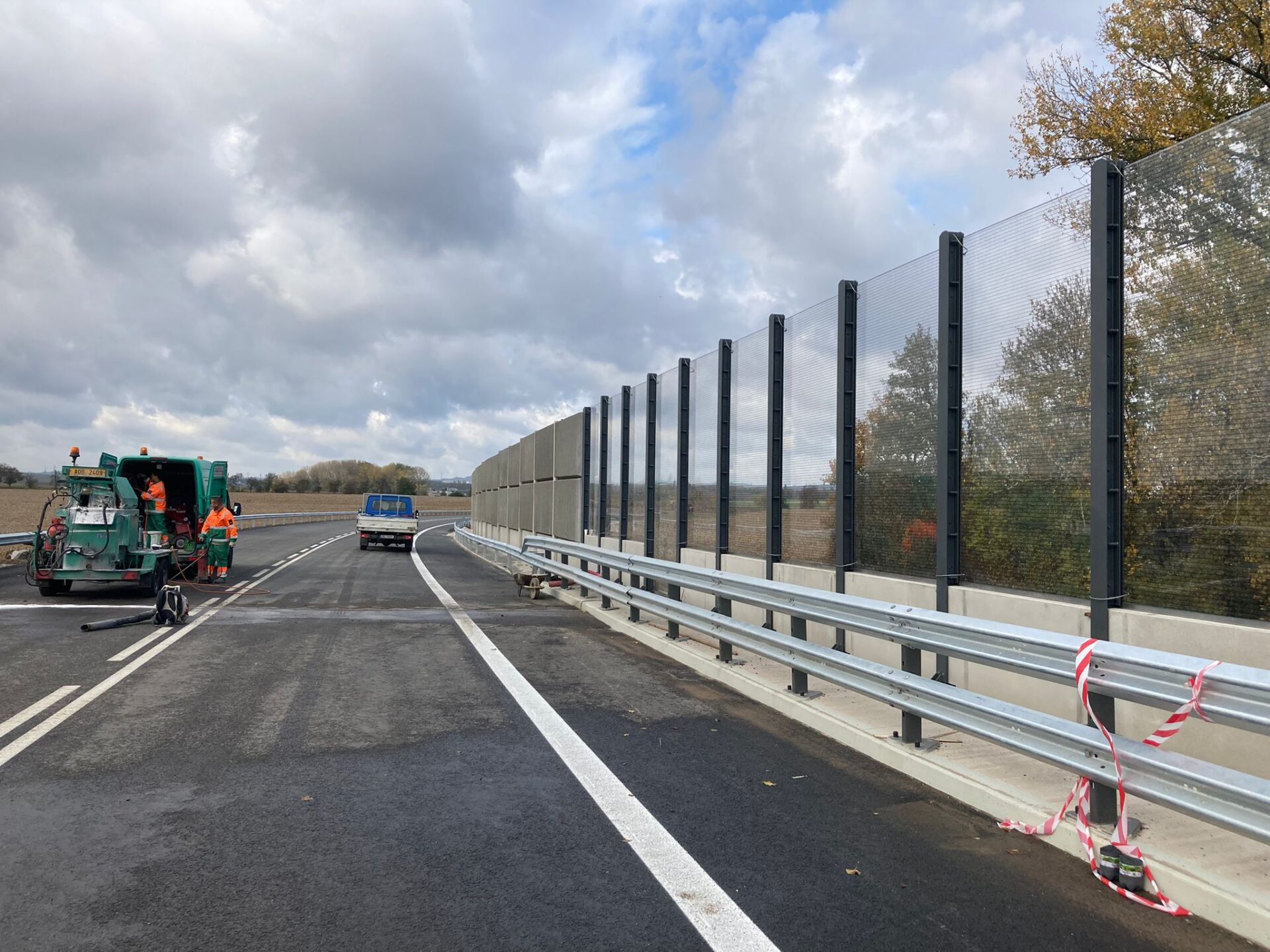 V tomto týdnu zhotovitel dokončil protihlukovou stěnu nebo dláždění chodníků k autobusovým zastávkám. Dokončuje se vodorovné dopravní značení i instalace toho svislého a souběžně se také osazuje zádržný systém. Probíhají terénní úpravy a úklid v okolí komunikace.