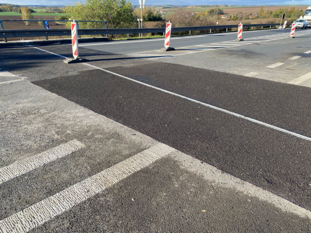 Původní termín pro uvedení do provozu byl stanoven na pondělí 31.10.2022. Při realizaci výměny mostního závěru bylo nezbytné dodržovat technologické přestávky pro jednotlivé vrstvy konstrukcí. Proběhlo bourání, osazení mostního závěru, betonáže, pokládka izolačních vrstev (těsnící pásy, lité asfalty). Jelikož se nám ve spolupráci se zhotovitelem podařilo jednotlivé technologické kroky provést bez časových prodlev, provedeme dne ještě obnovu vodorovného dopravního značení a most opět uvedeme do plného provozu v průběhu dnešního dne 26.10.2022, tedy v předstihu 4 kalendářních dnů.