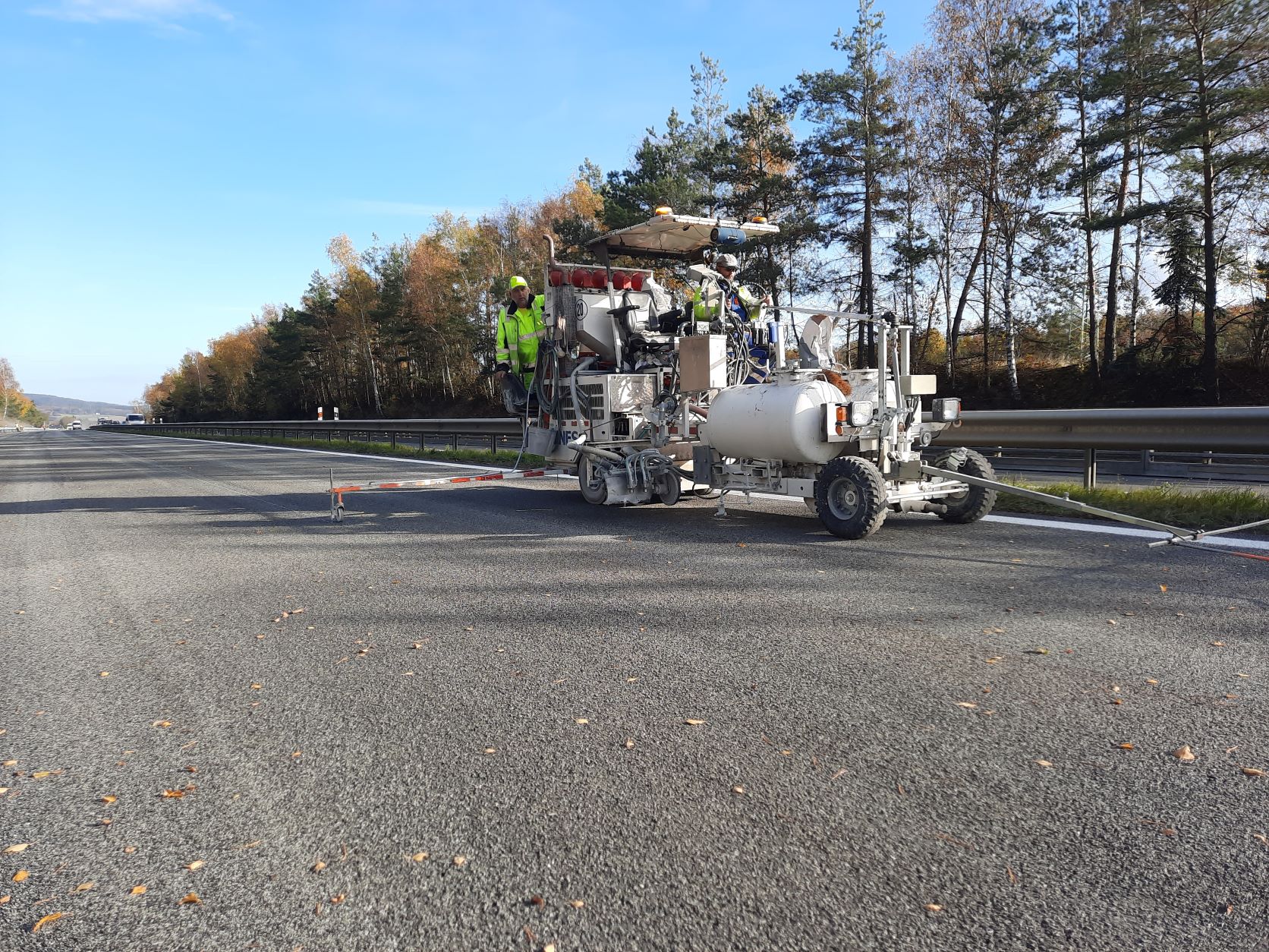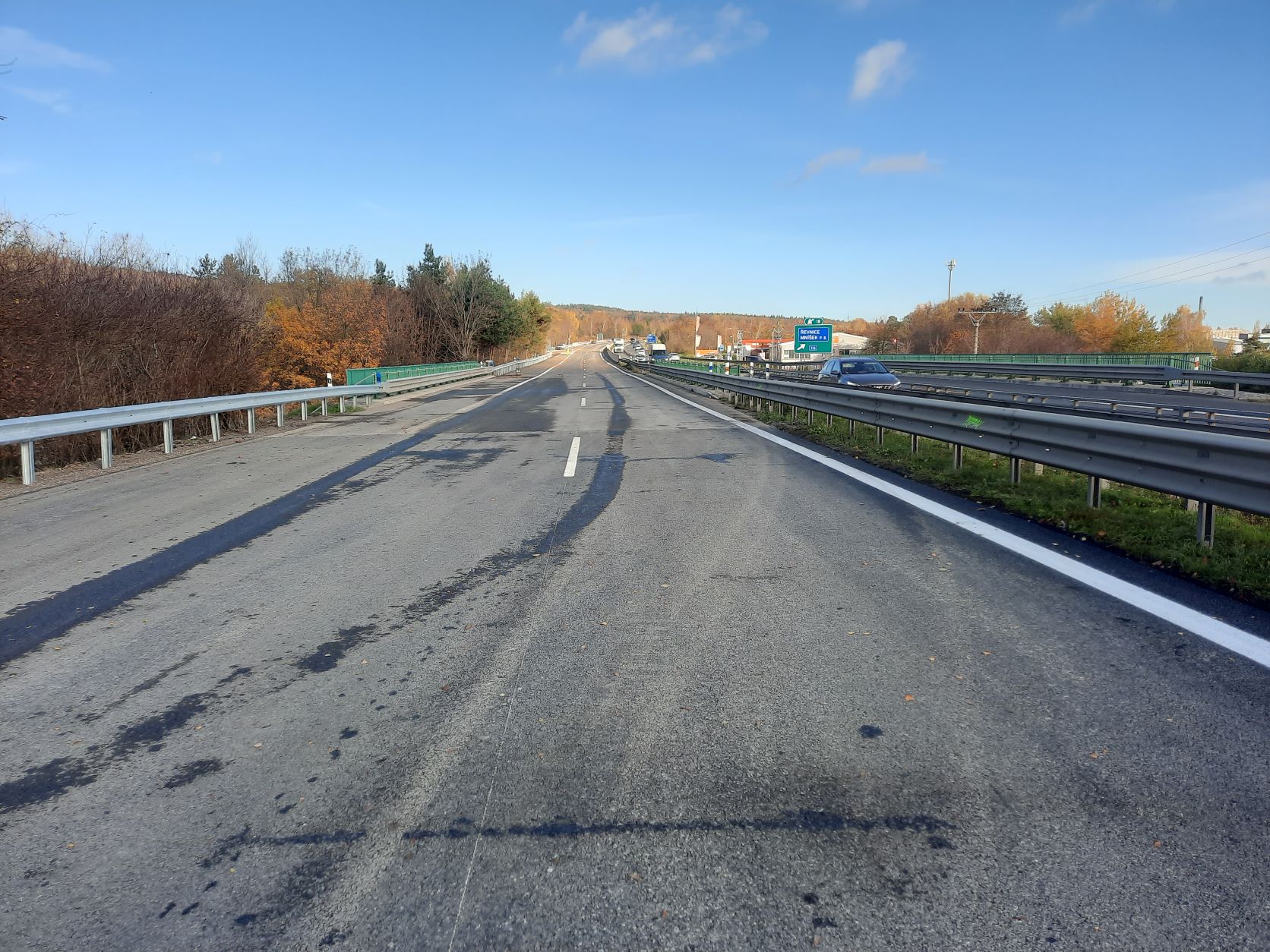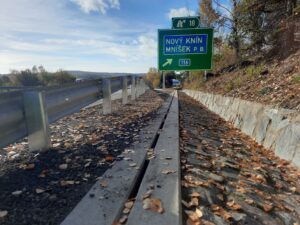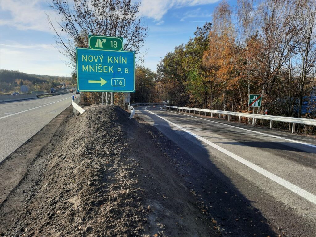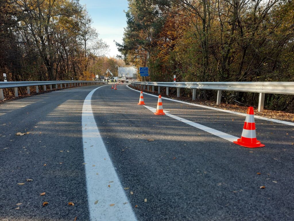 Ve středu 2.11.2022 ještě probíhaly dokončovací práce nutné pro uvedení opraveného úseku do provozu v režimu předčasného užívání stavby. Dokončovalo se vodorovné dopravní značení, čistil se povrch vozovky nebo dosypávaly krajnice. V průběhu dnešního dne (tj. 3.11.2022) po demontáži stávajícího dopravního omezení uvedeme opravený úsek do provozu a obnovíme tak standardní vedení provozu v režimu 2+2 jízdní pruhy.