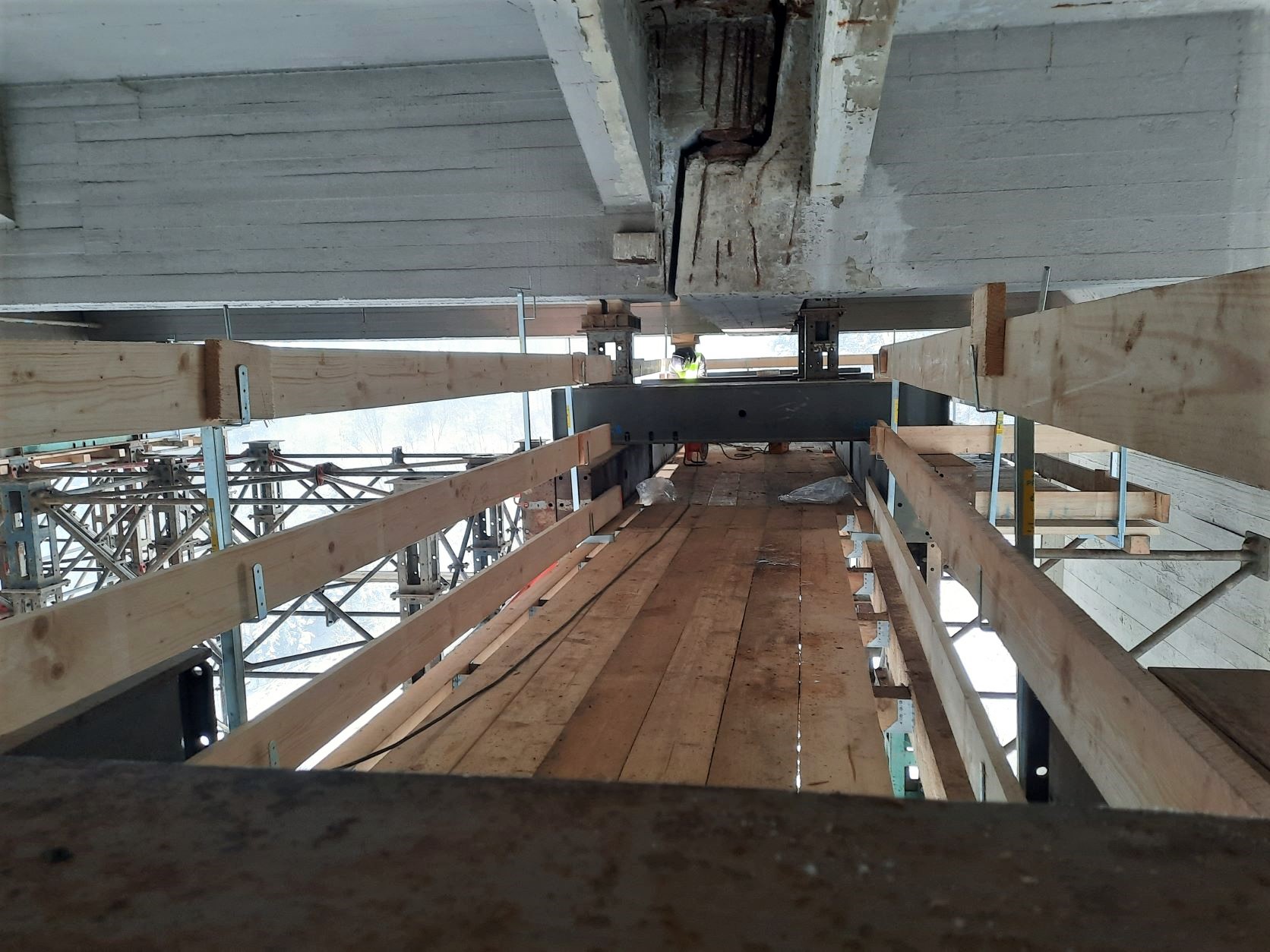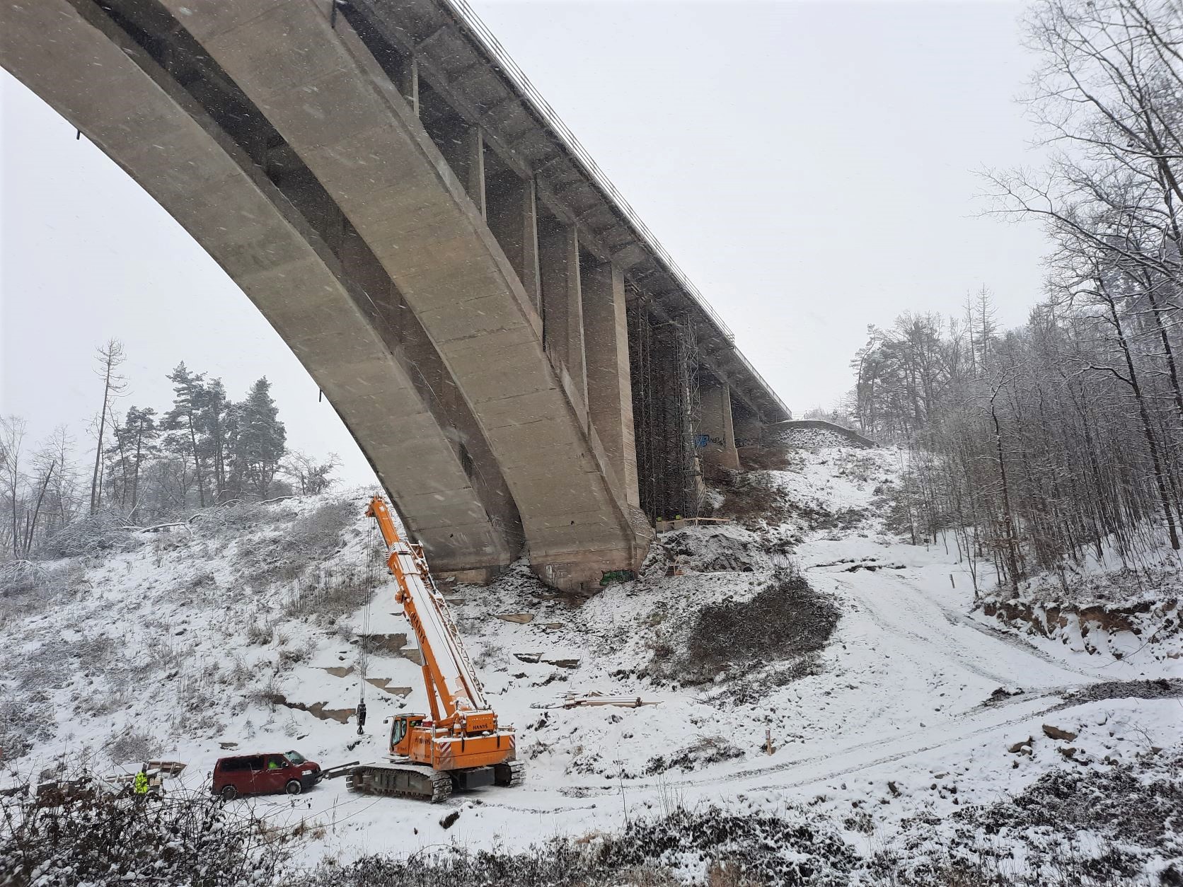 Probíhající provizorní podepření nosné konstrukce mostu na dálnici D1 přes údolí Šmejkalky je hotové. V jeho 4 polích z 9 jsme reagovali na zajištění požadovaných hodnot zatížitelnosti na mostě do doby provedeni jeho celkové opravy. To bylo nezbytné nejen pro běžný provoz na dálnici, ale i pro navazující přestavbu tohoto dálničního mostu. Podepření v polích 1, 4, 6, a 9 bylo aktivováno postupně už v uplynulém týdnu a dnes 21.12.2022 byly práce ukončeny.