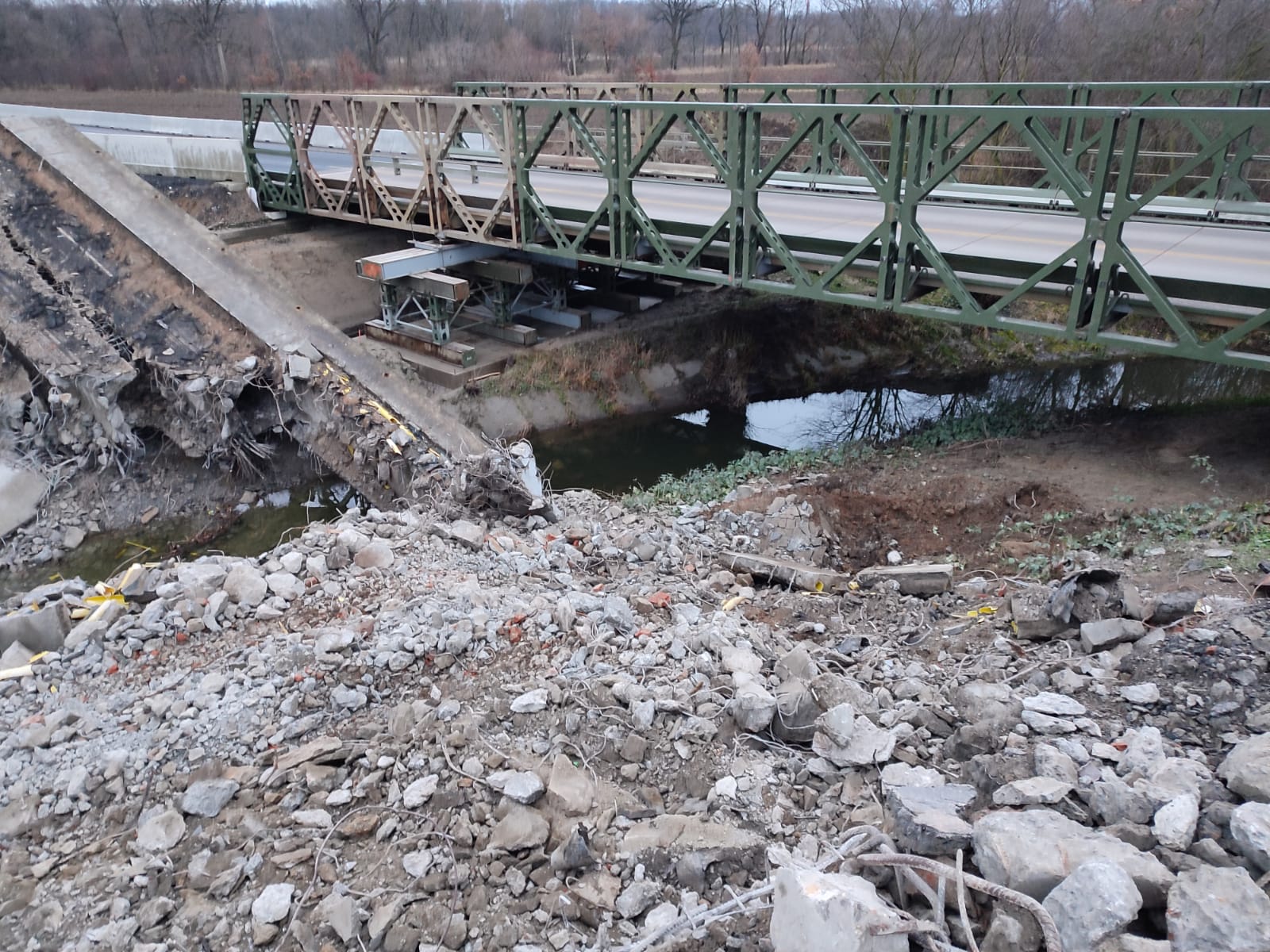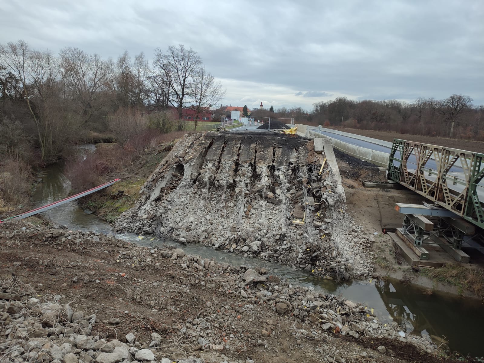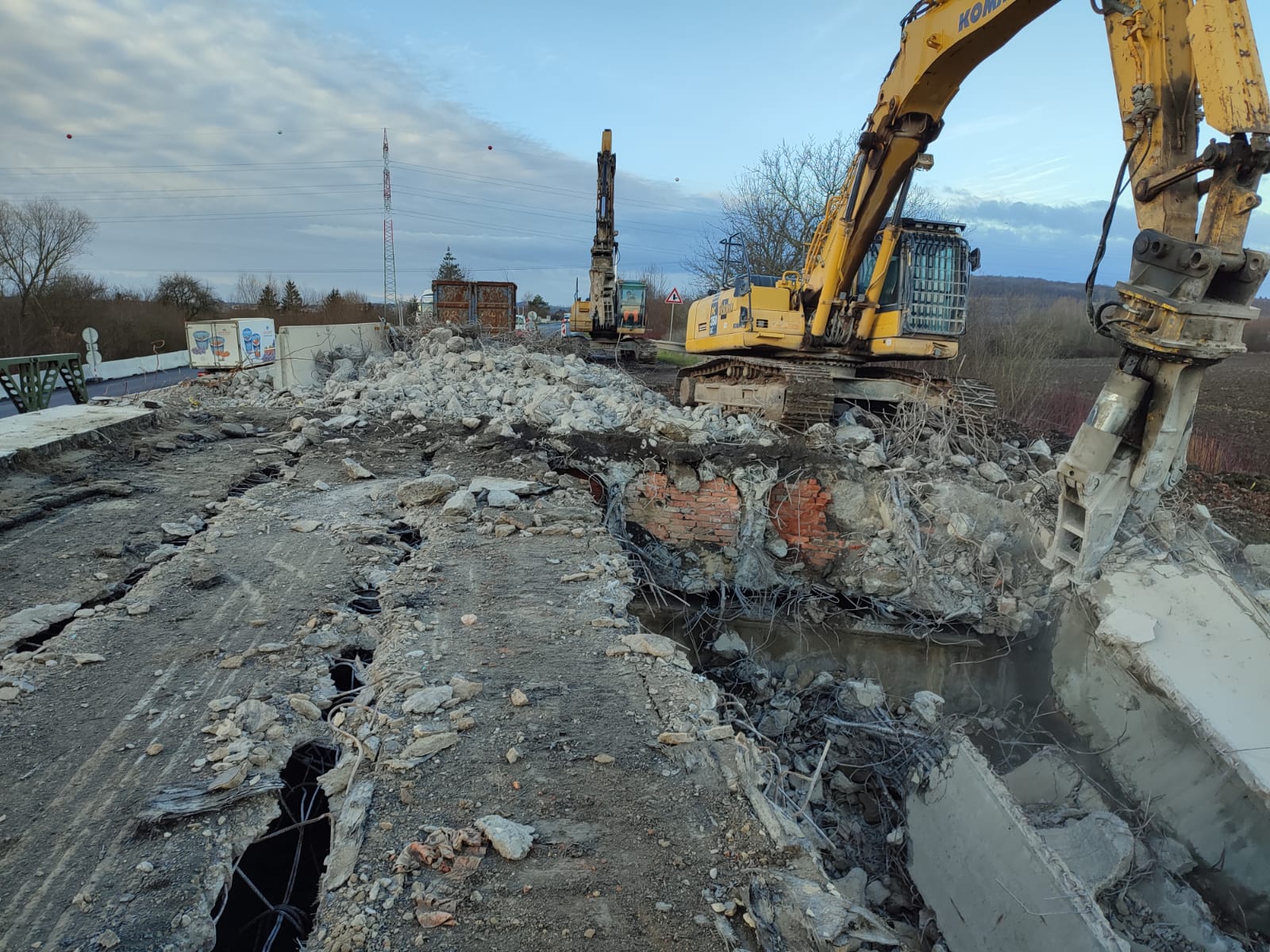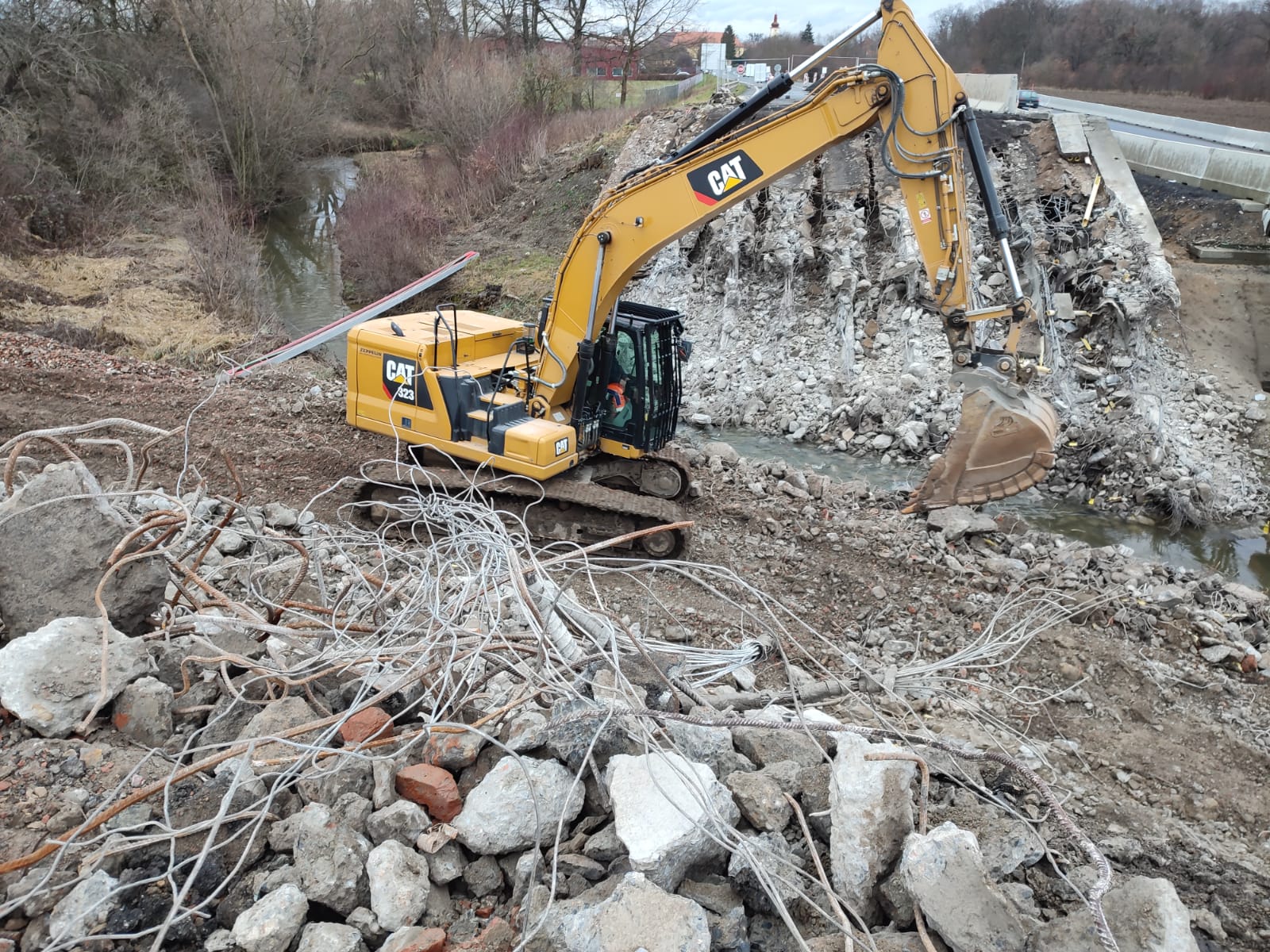 I v zimním období pokračujeme na kompletní rekonstrukci mostu, který překlenuje silnici I/2 přes říčku Vrchlici u nových Dvorů na Kutnohorsku. Demolice původního a již nevyhovujícího mostní objektu a výstavba nového mostu je součástí opravy silnice I/2 Malín-Nové Dvory. Aktuálně se dokončuje demolice starého mostu. ta bude provedena až do úrovně pilotového základu. Na stávající piloty a doplňující mikropiloty se poté založí nové železobetonové opěry pro nový most.