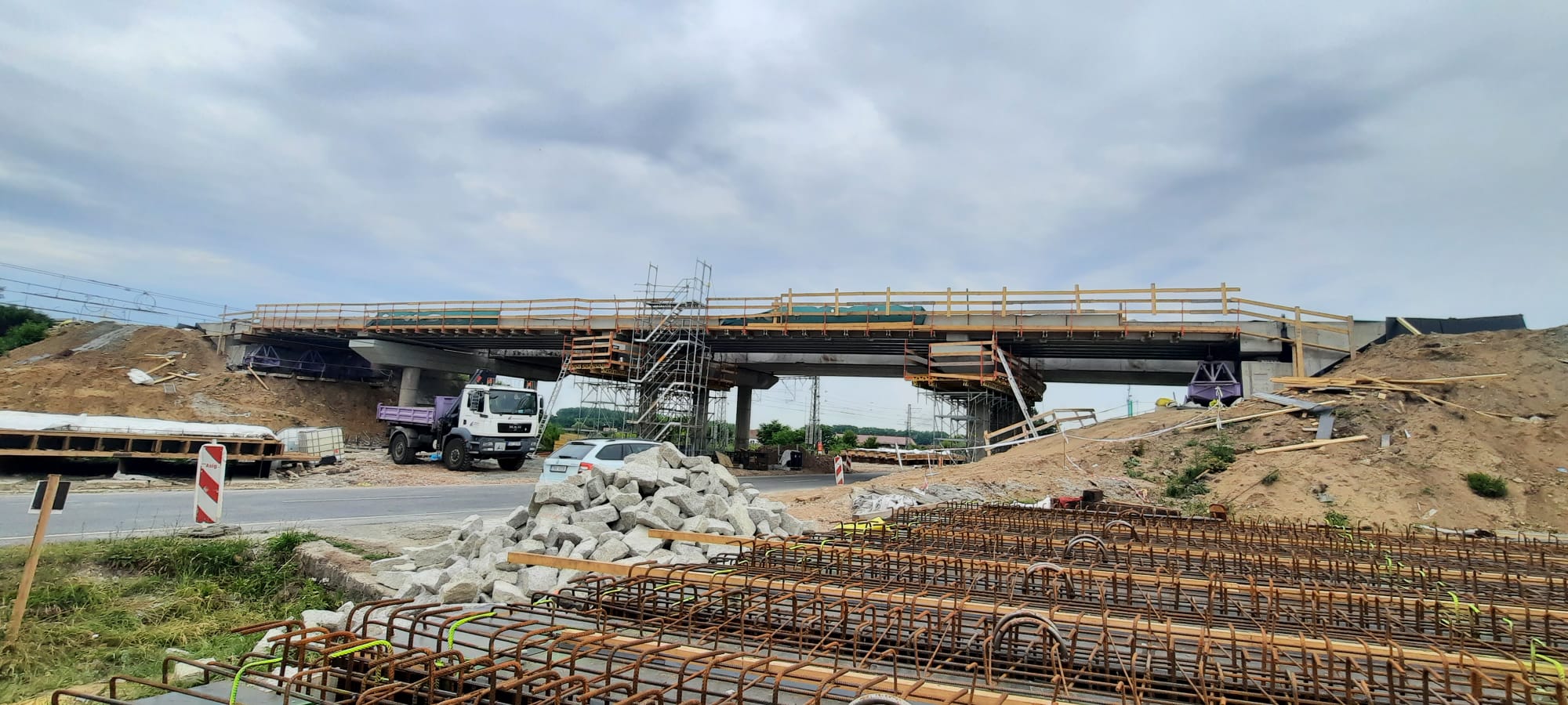 S touto první půlkou mostu bychom chtěli být hotoví do konce července a pak na ni převést dopravu. Poté přijde na řadu druhá polovina mostu, který překlenuje významnou železniční trať Nymburk – Kolín a vedle toho také silnici III/32812 mezi obcemi Choťánky a Libice nad Cidlinou.