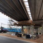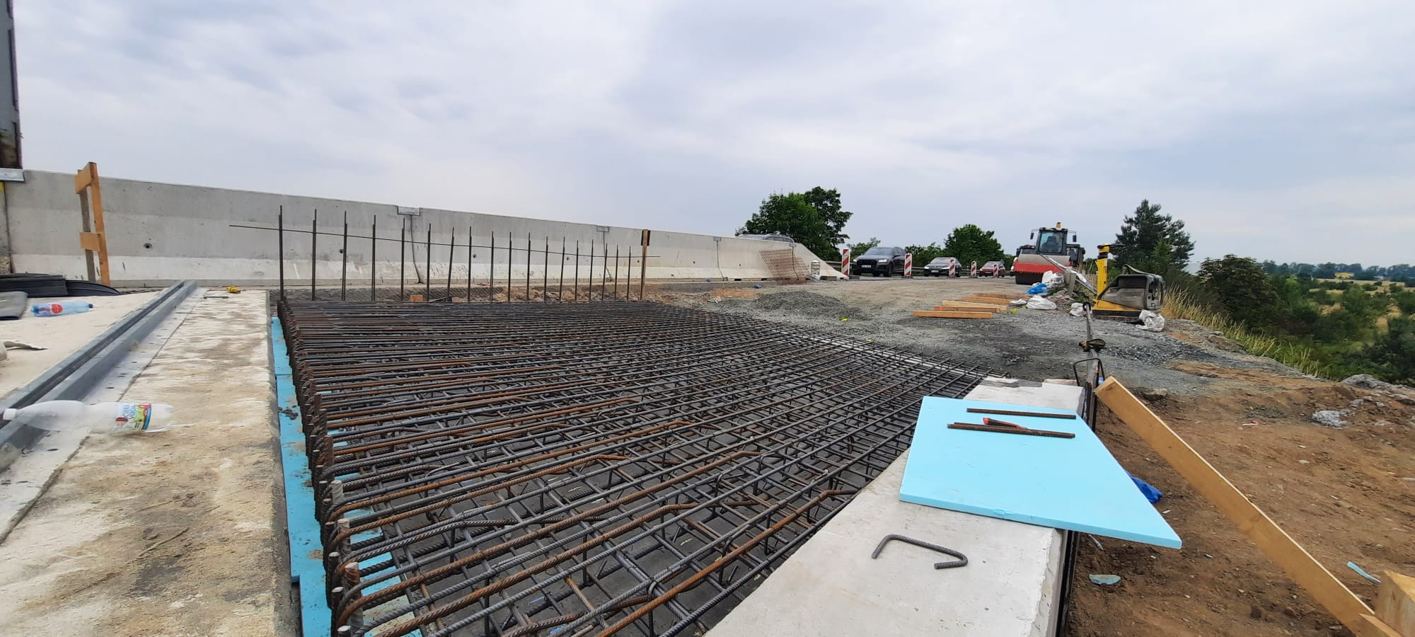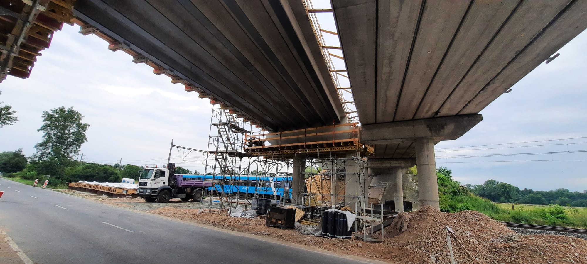 Už třetím měsícem pokračujeme u obce Choťánky na Nymbursku s celkovou opravou mostu s evidenčním číslem 32-001e na silnici I/32. Po dubnové demolici první poloviny mostu už byla nová konstrukce usazena, osazena dilatačními závěry a aktuálně probíhá armování přechodové desky.