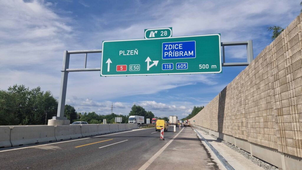Na dálnici D5 u Bavoryně na Berounsku je výměna protihlukové stěny v plném proudu. Práce už jsou z půlky hotové a druhá půlka nás teď čeká.