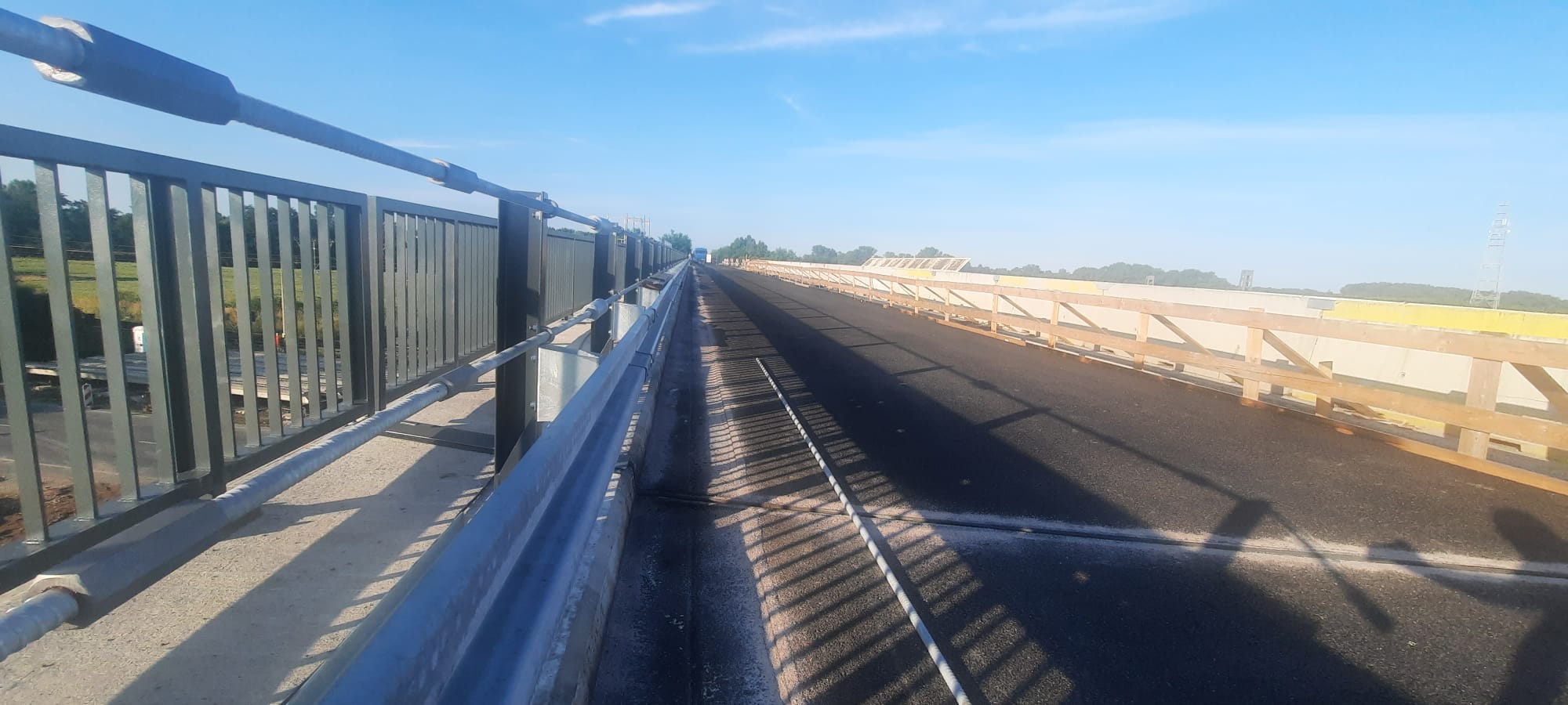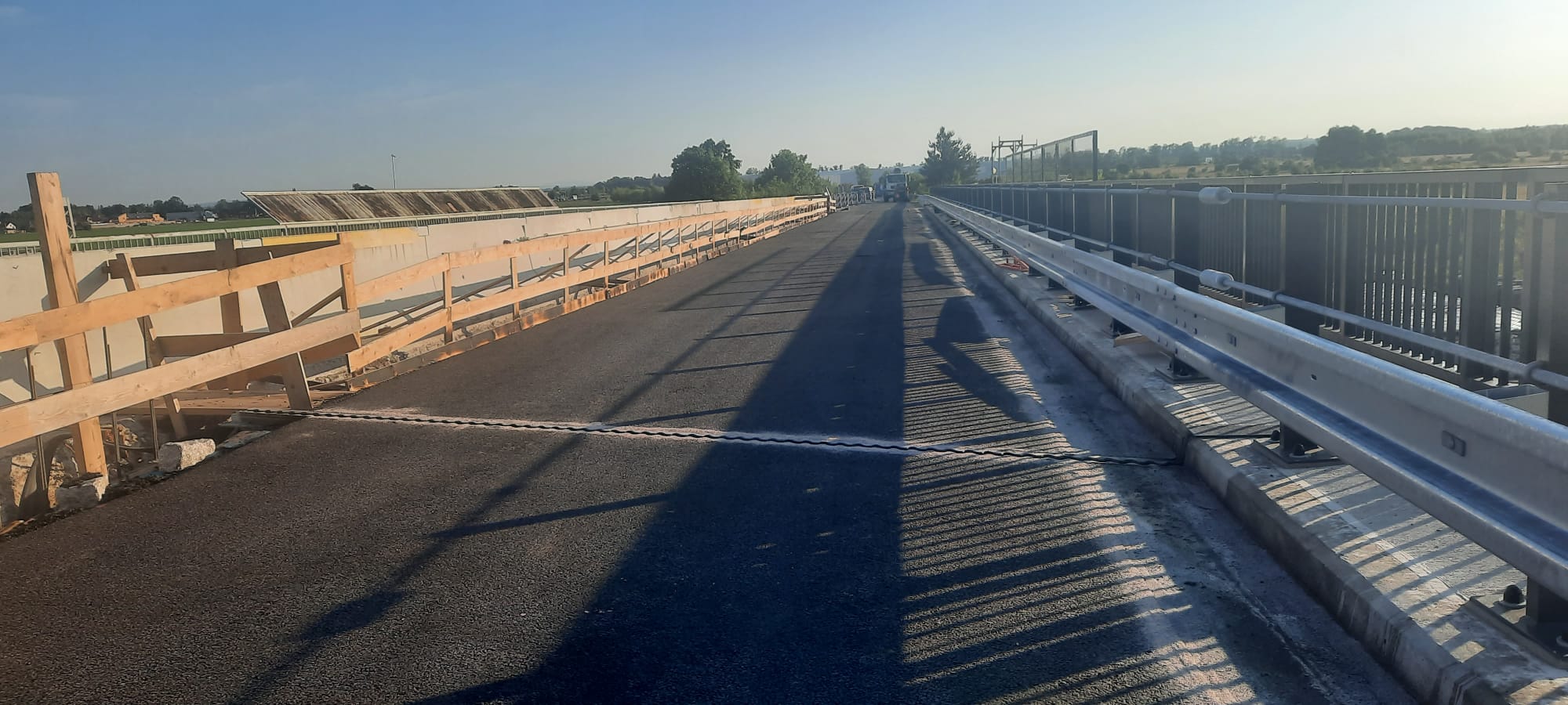 Po třech měsících jsme dokončili celkovou rekonstrukci první, pravé poloviny mostu ev.č. 32-001e na silnici I/32 u Choťánek na Nymbursku a už v neděli 30. července na ni převedeme dopravu. Práce se teď soustředí na druhou, levou polovinu.